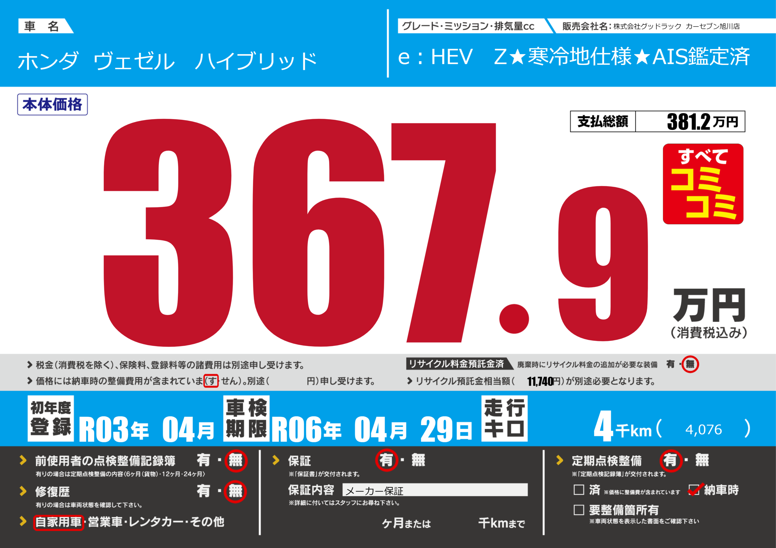 e:HEV Z★寒冷地仕様★AIS鑑定済 |