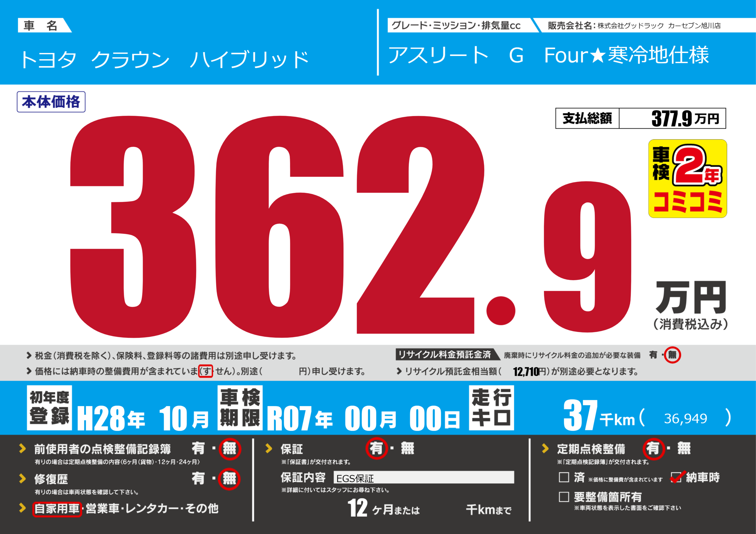 | 走行キロ | 3.7万km | 初年度登録 | H28年10月 |