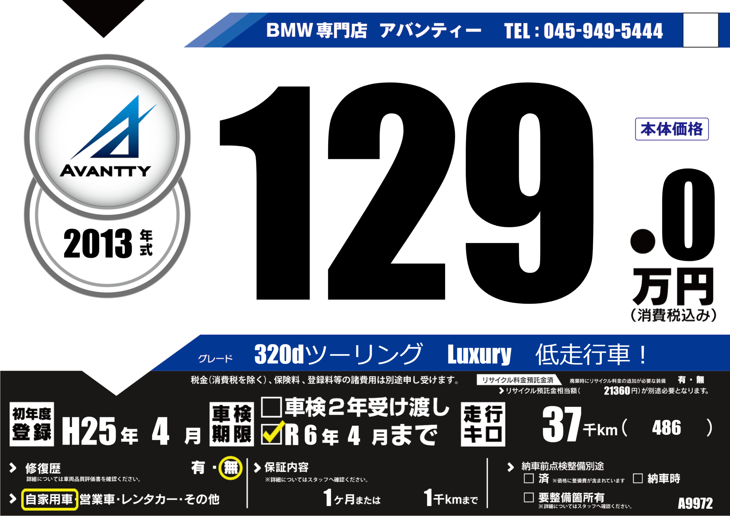 | 走行キロ | 3.7万km | 初年度登録 | H25年4月 |