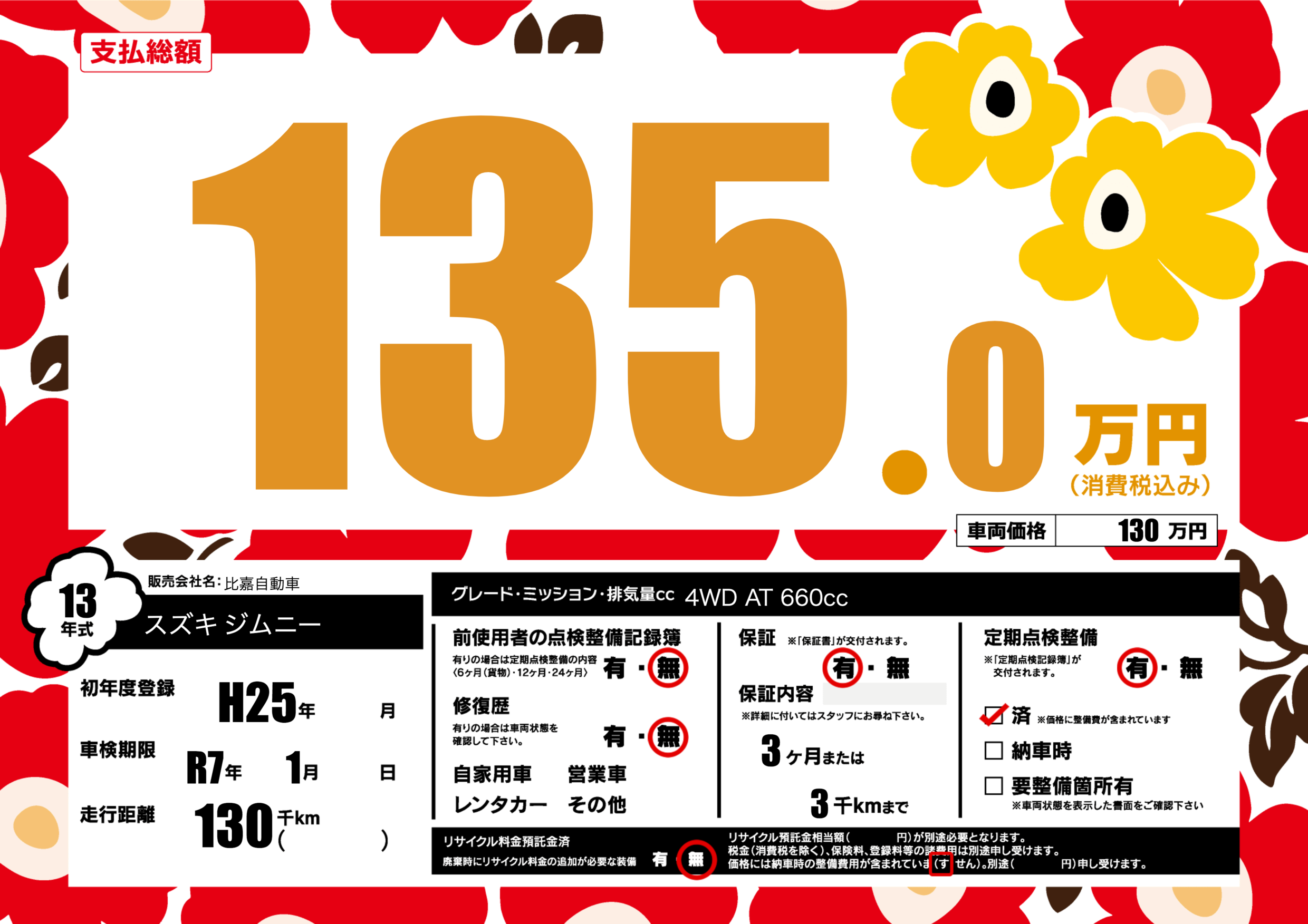 | 定期点検整備 | 定期点検整備あり 定期点検整備済み | ||