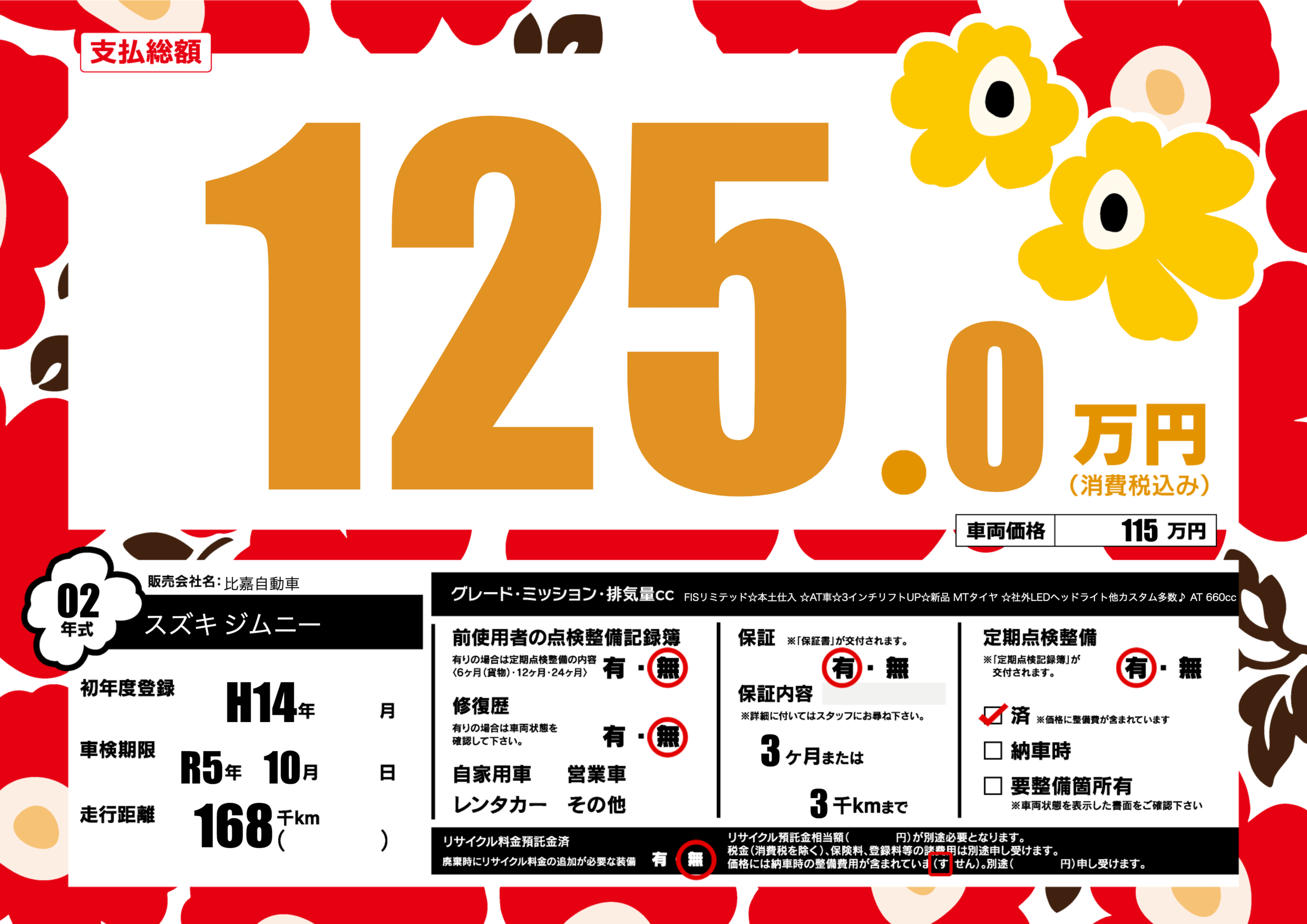 | 定期点検整備 | 定期点検整備あり 定期点検整備済み | ||
