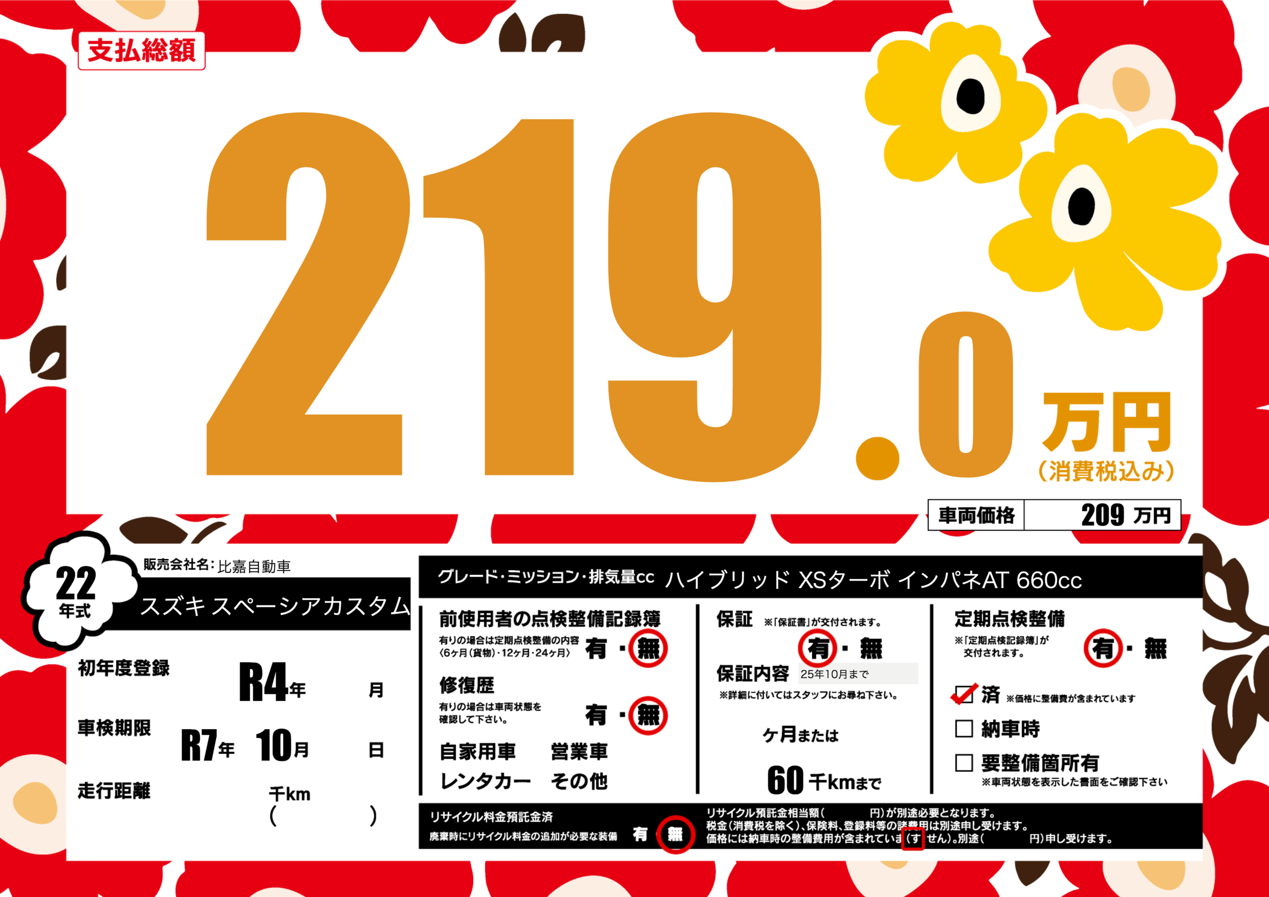 | 定期点検整備 | 定期点検整備あり 定期点検整備済み | ||