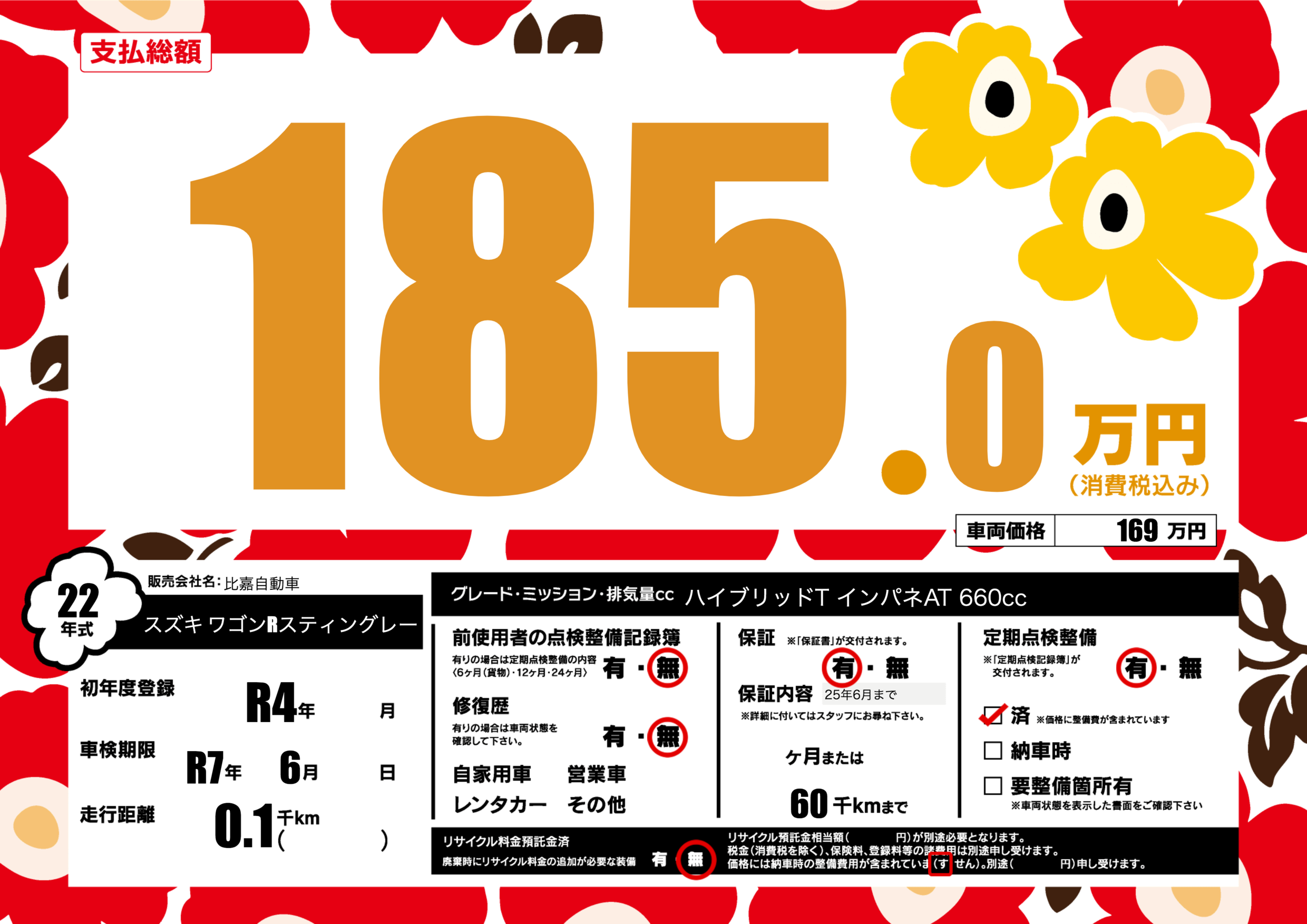 | 車検制限 | R7年 6月 - 日 | ||