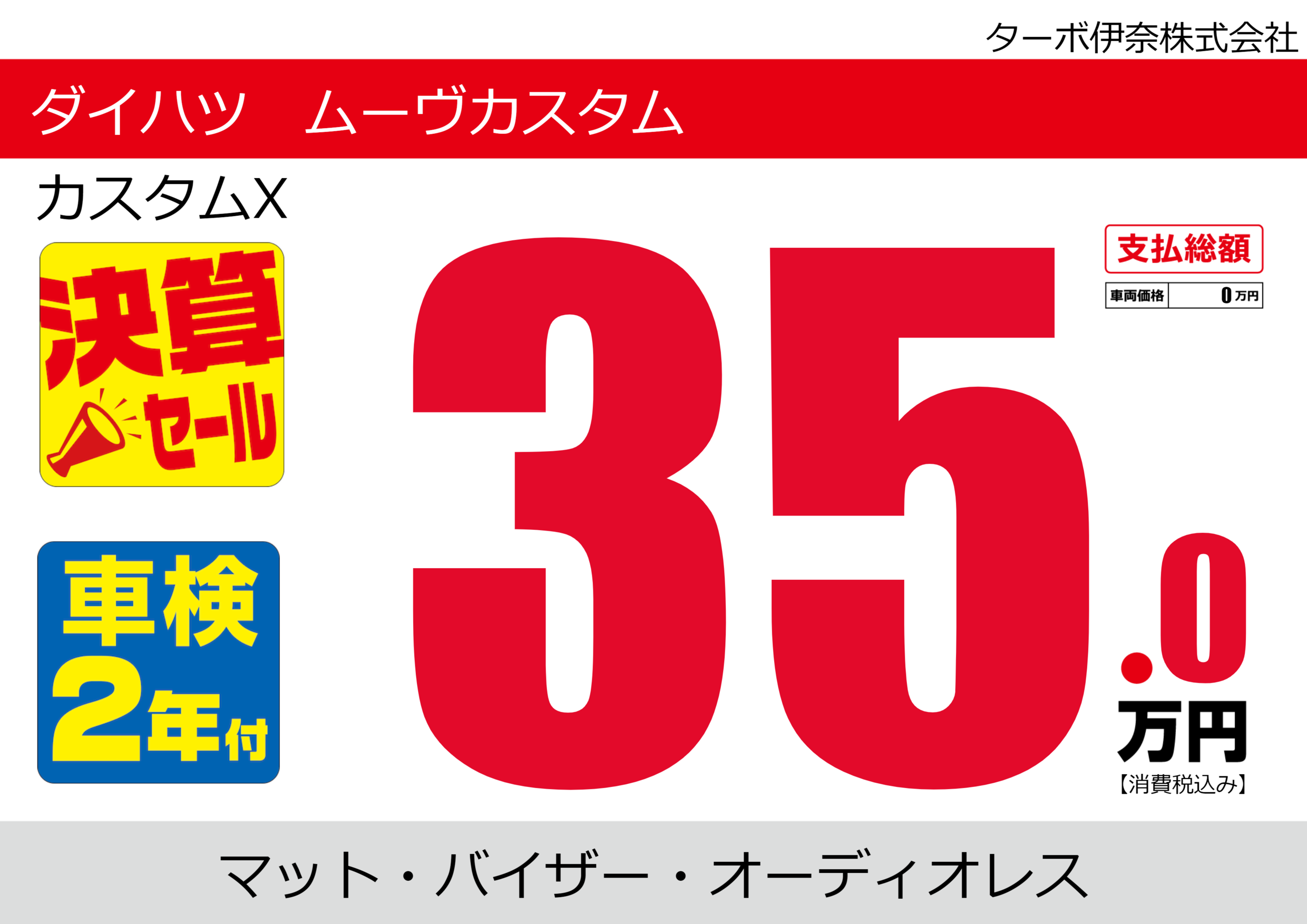 | 車名 | ダイハツ ムーヴカスタム | グレード ミッション 排気量 |