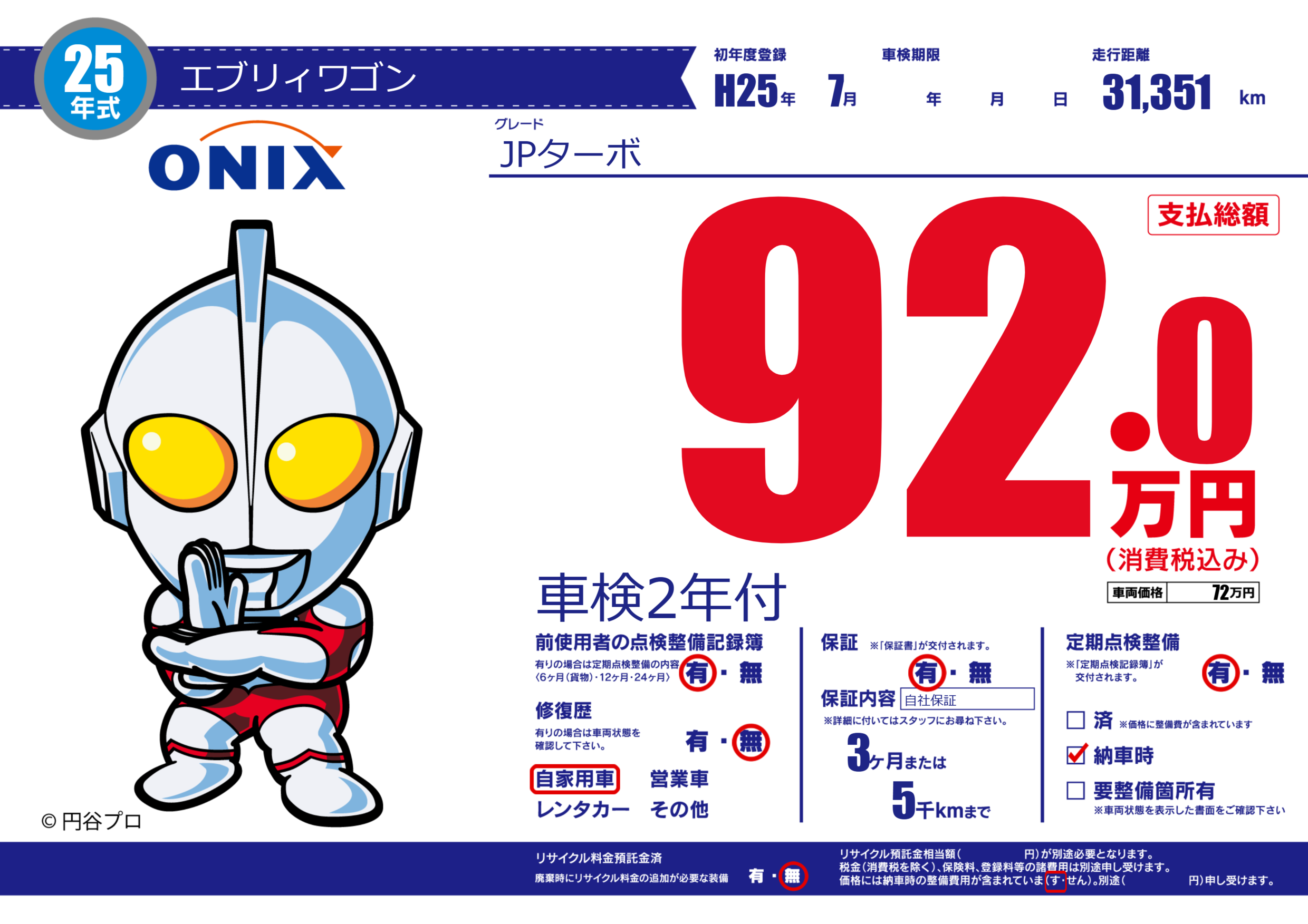 保証付き 保証内容(自社保証) 3ヶ月または(5)千kmまで |