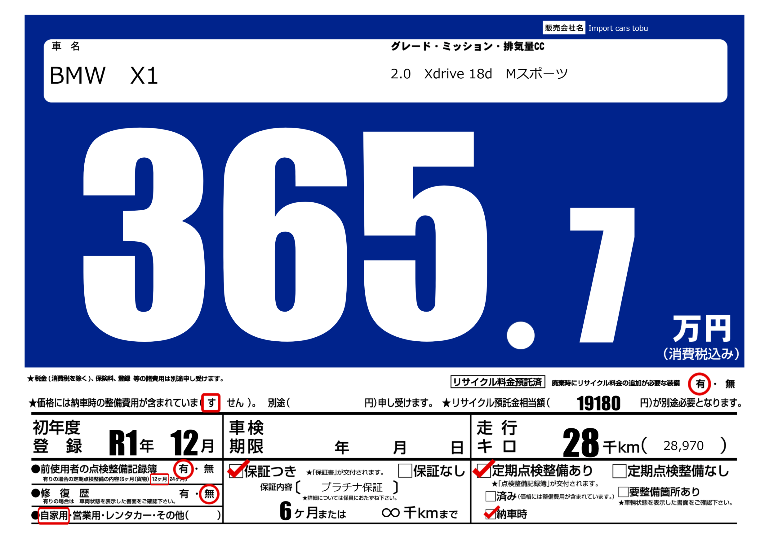 保証付き 保証内容( プラチナ保証) 6ヶ月または(∞)千kmまで |