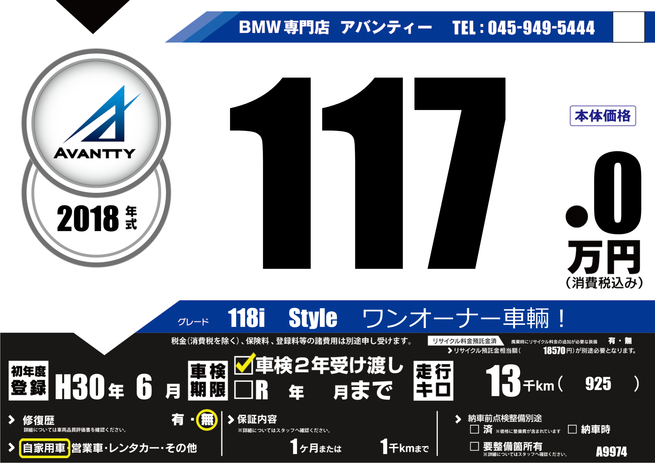 | 走行キロ | 1.3万km | 初年度登録 | H30年6月 |