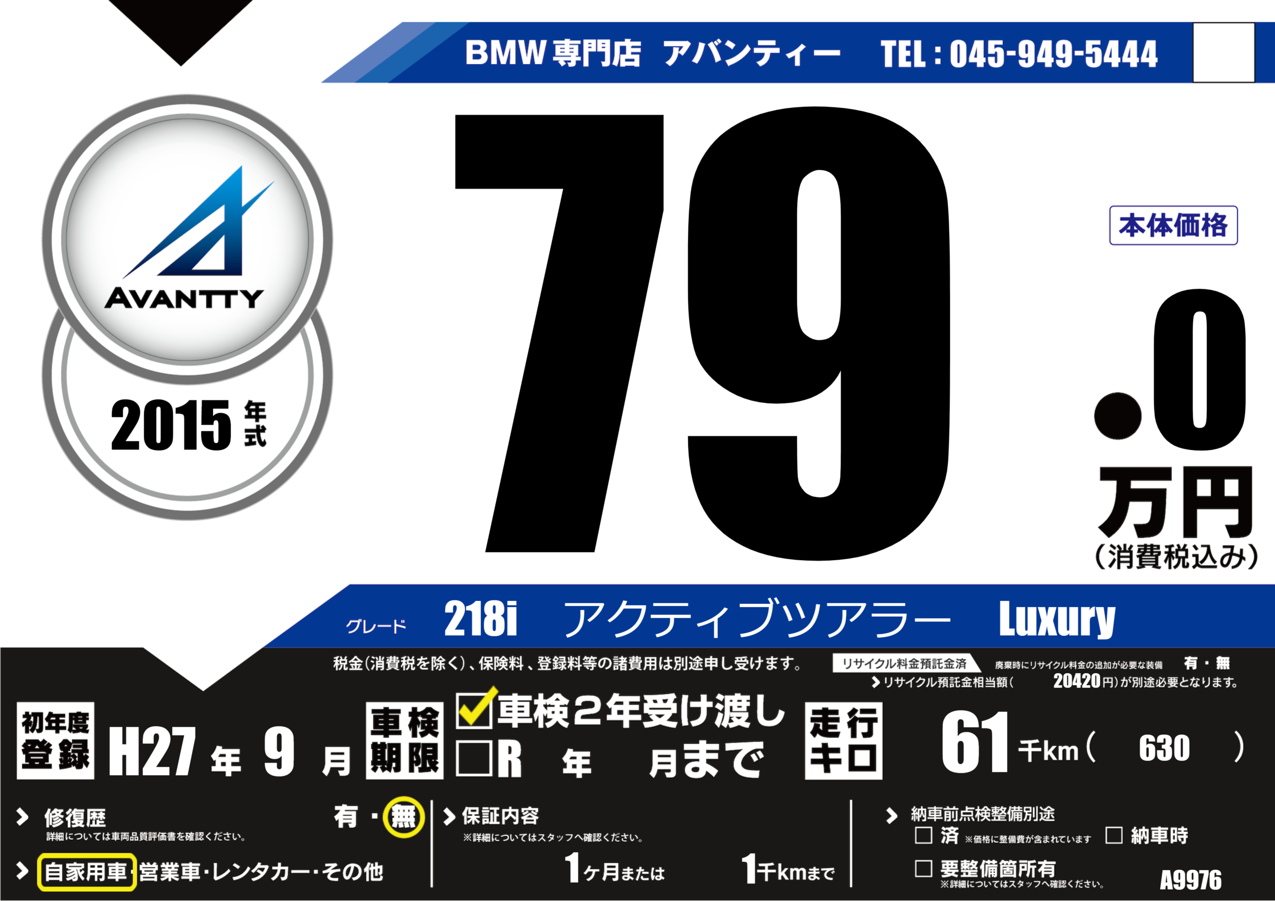 | 走行キロ | 6.1万km | 初年度登録 | H27年9月 |
