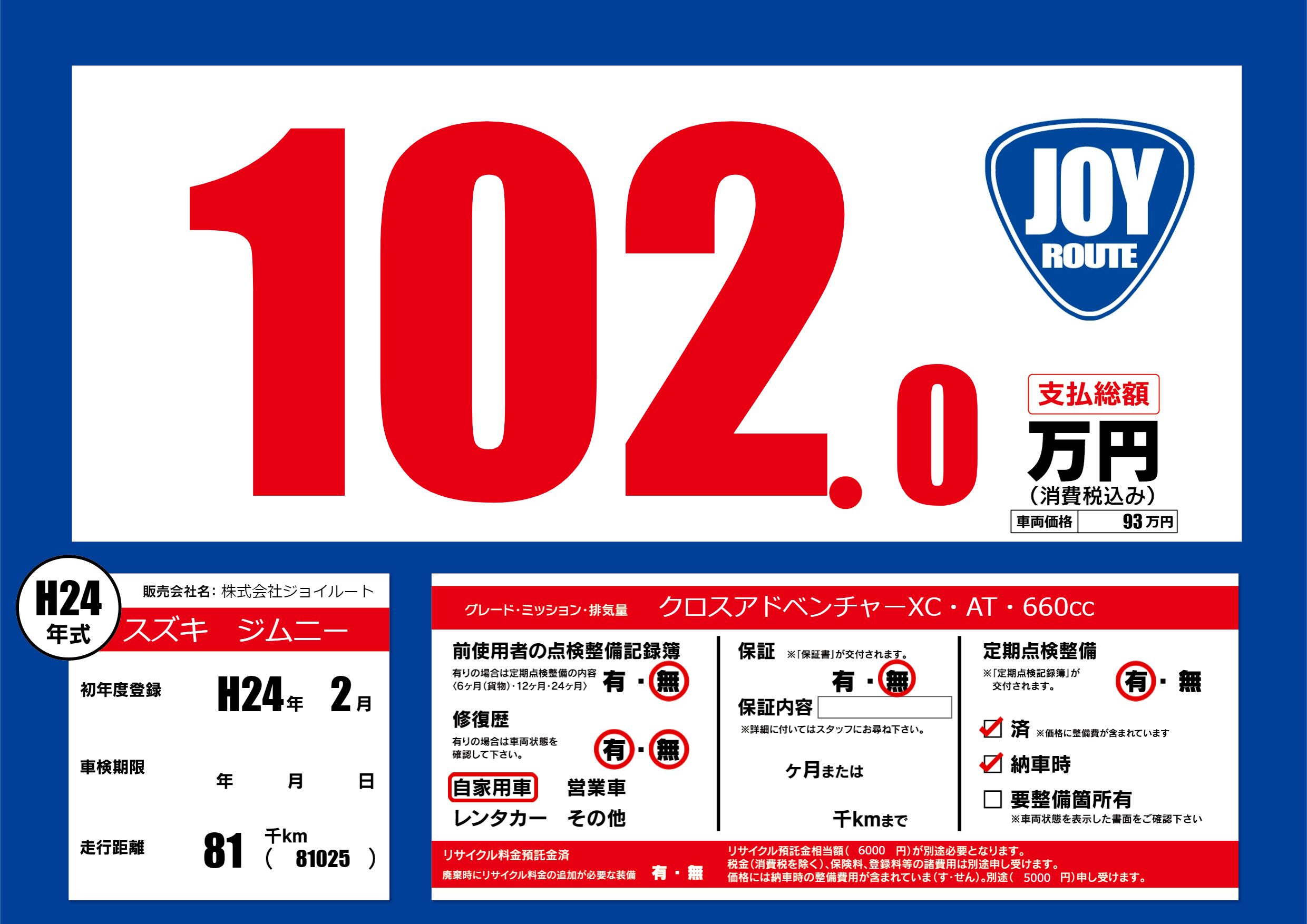 | 定期点検整備 | 定期点検整備あり 定期点検整備済み 納車時あり | ||