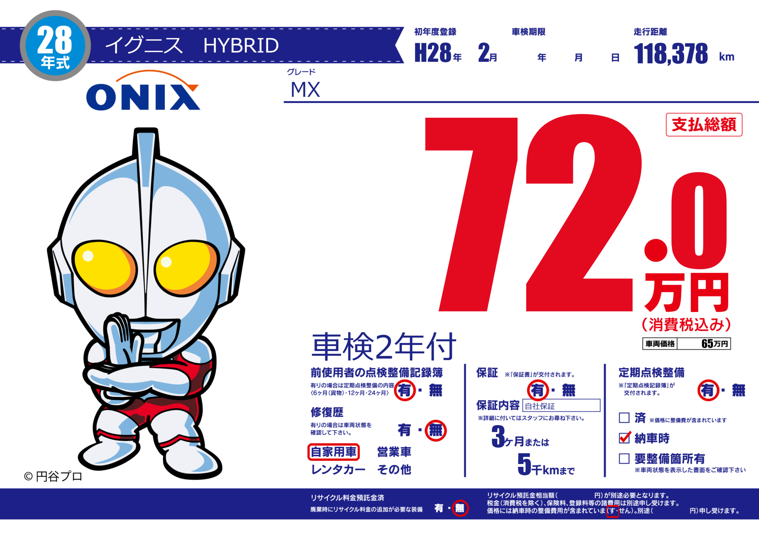 | 走行キロ | 11.8万km | 初年度登録 | H28年2月 |