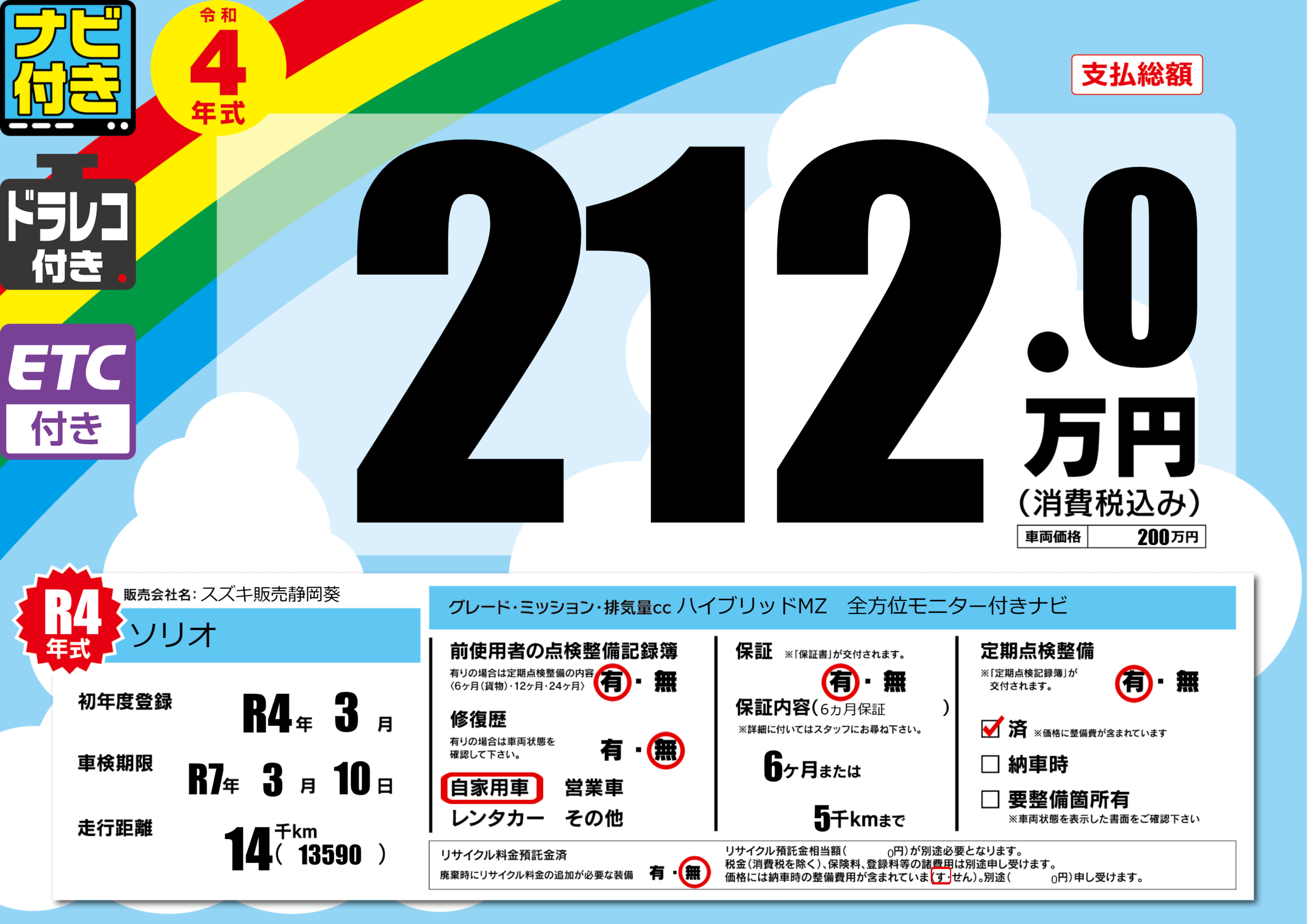 | 定期点検整備 | 定期点検整備あり 定期点検整備済み | ||