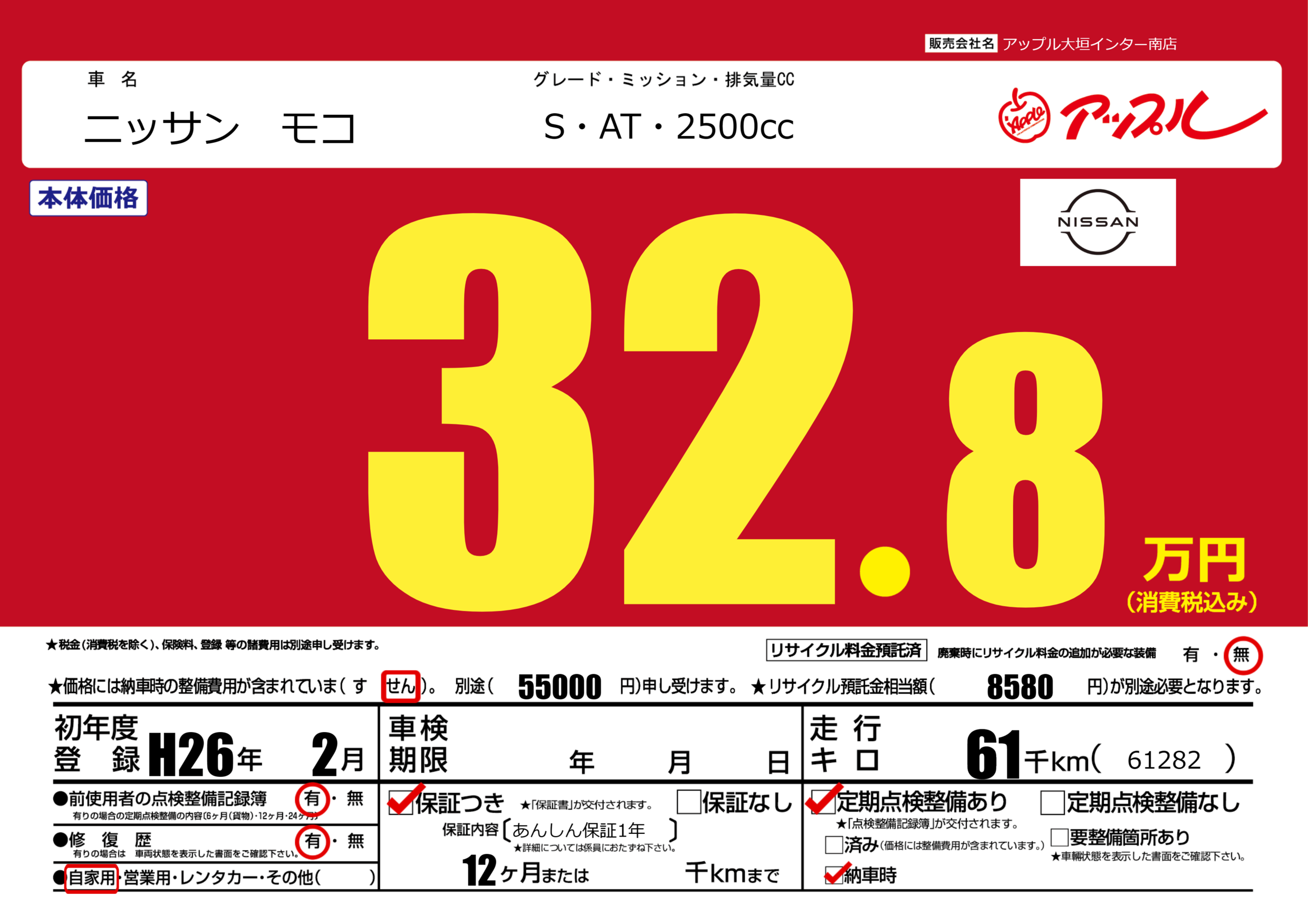 | 車名 | ニッサン モコ | グレード ミッション 排気量 |