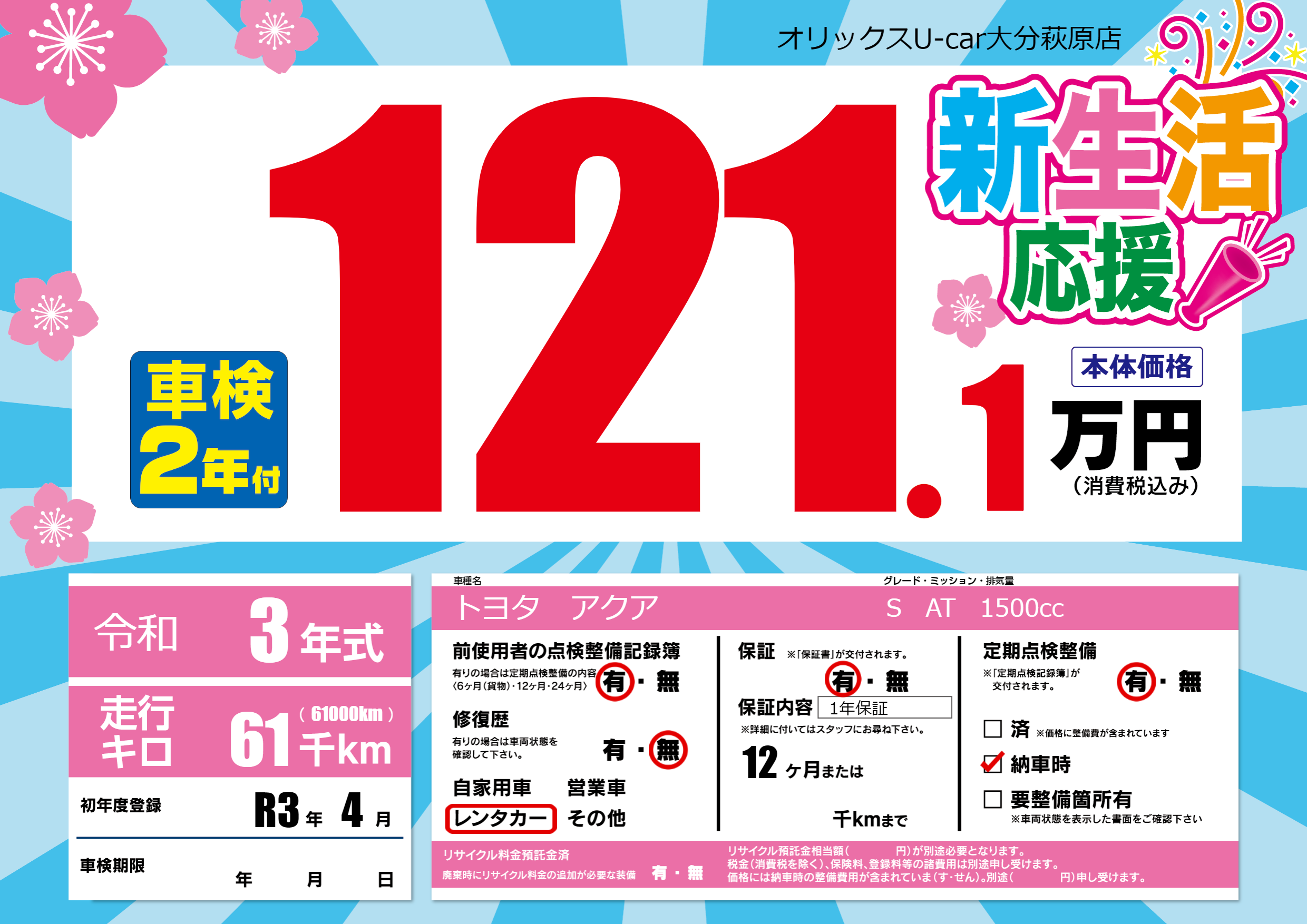 | 走行キロ | 6.1万km | 初年度登録 | R3年4月 |