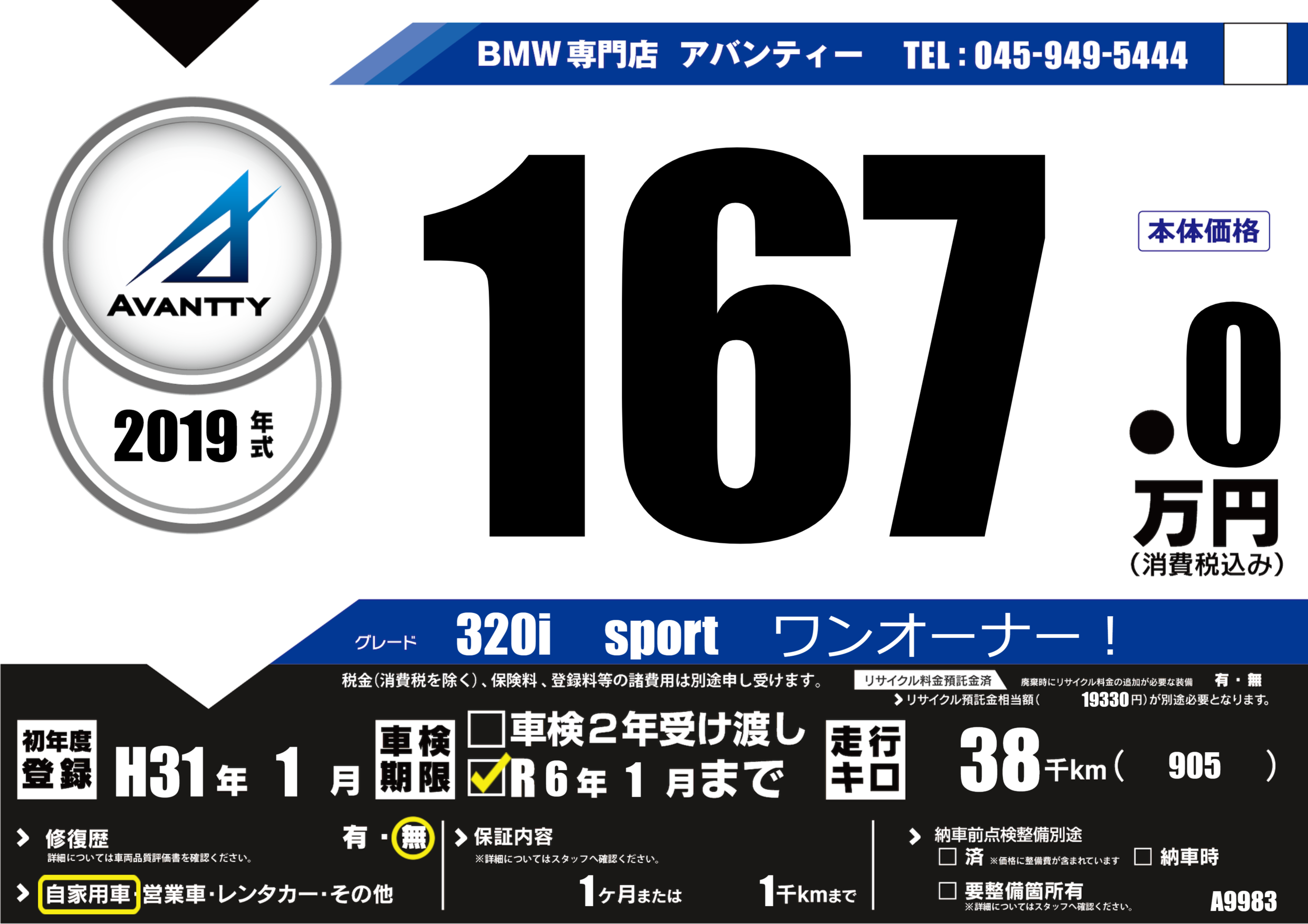 | 走行キロ | 3.8万km | 初年度登録 | H31年1月 |