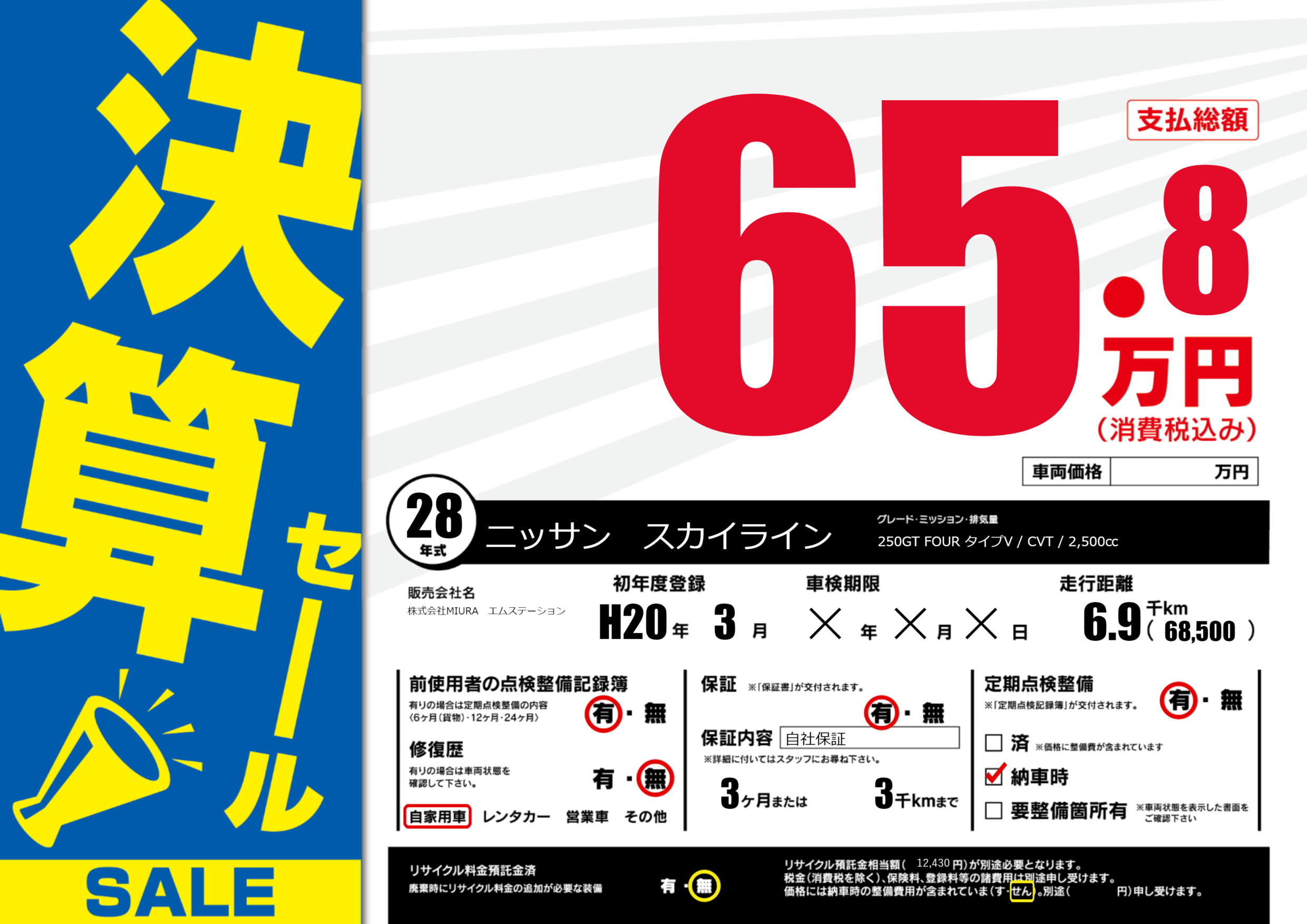 | 車検制限 | ✕年 ✕月 ✕日 | ||