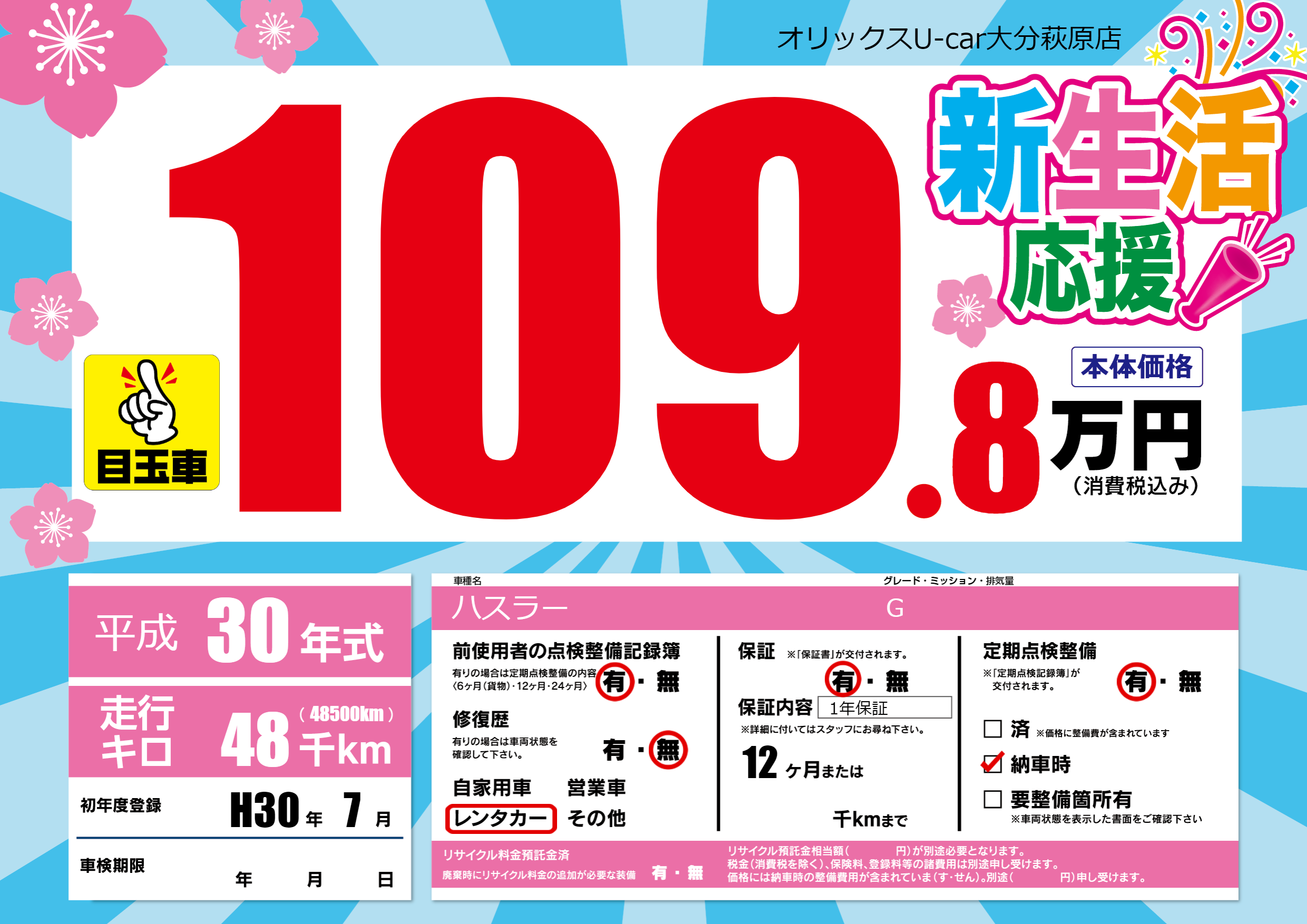 | 車名 | ハスラー | グレード ミッション 排気量 |