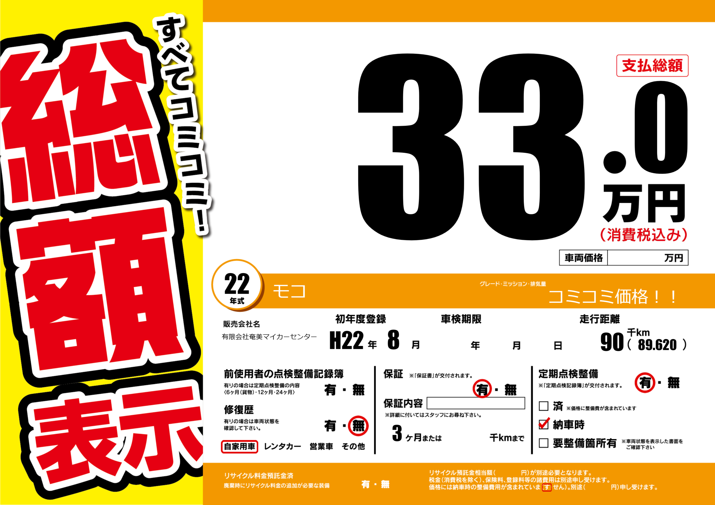 コミコミ価格!! |