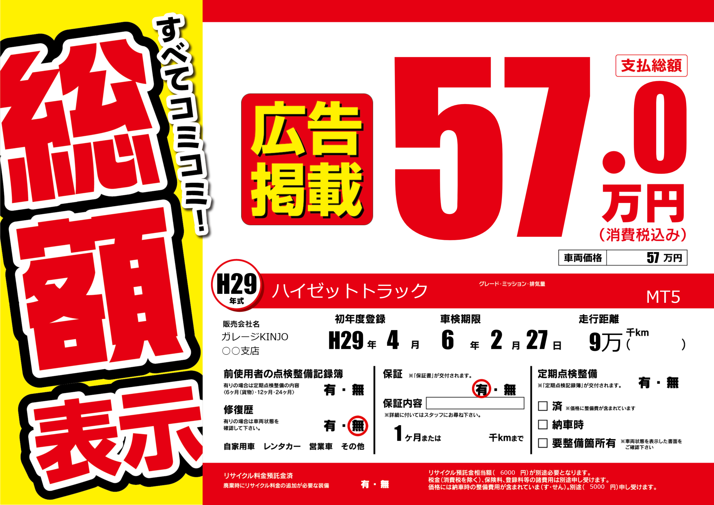 なし | リサイクル預託金相当額 | ( 1円)が別途必要 |