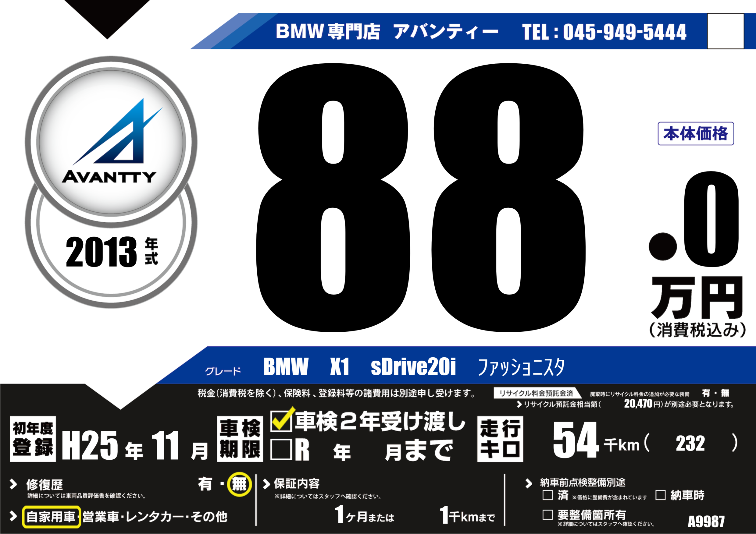 BMW X1 sDrive20i ファッショニスタ |