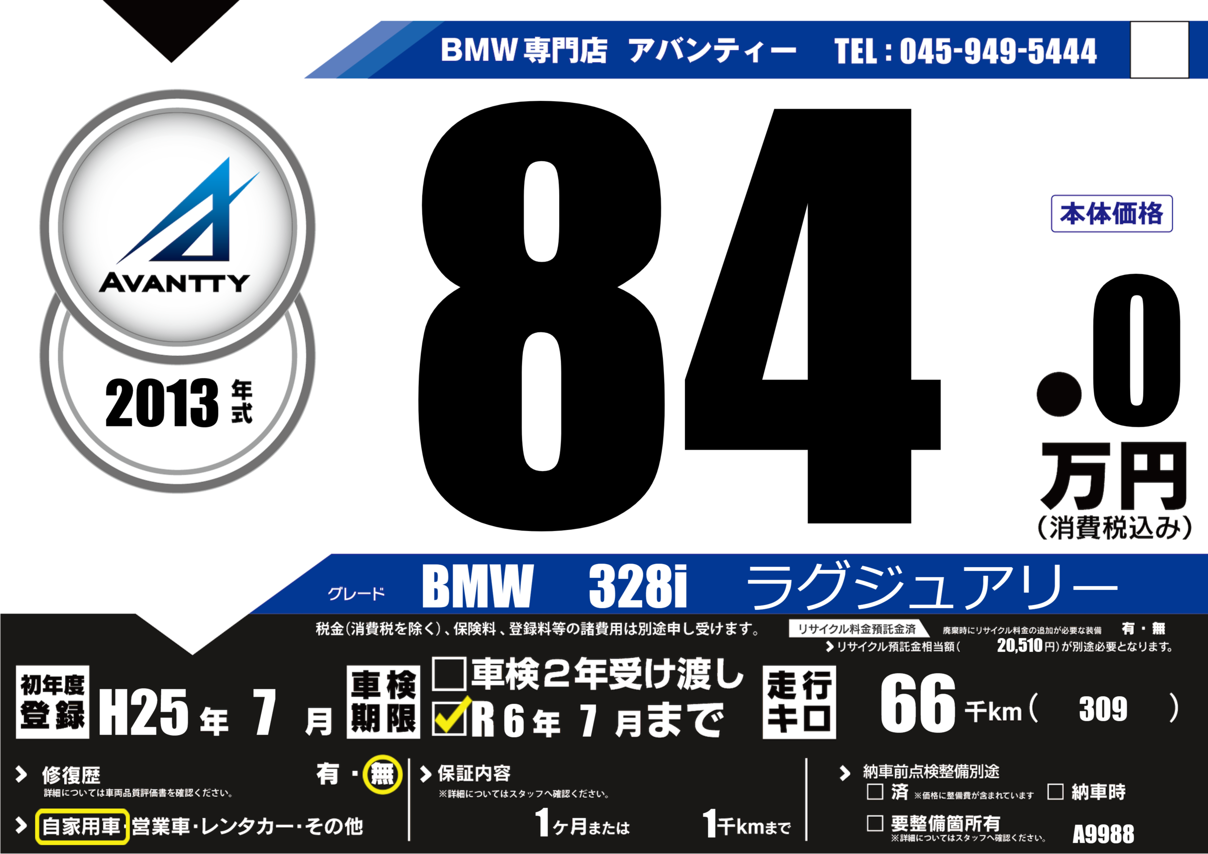 | 走行キロ | 6.6万km | 初年度登録 | H25年7月 |