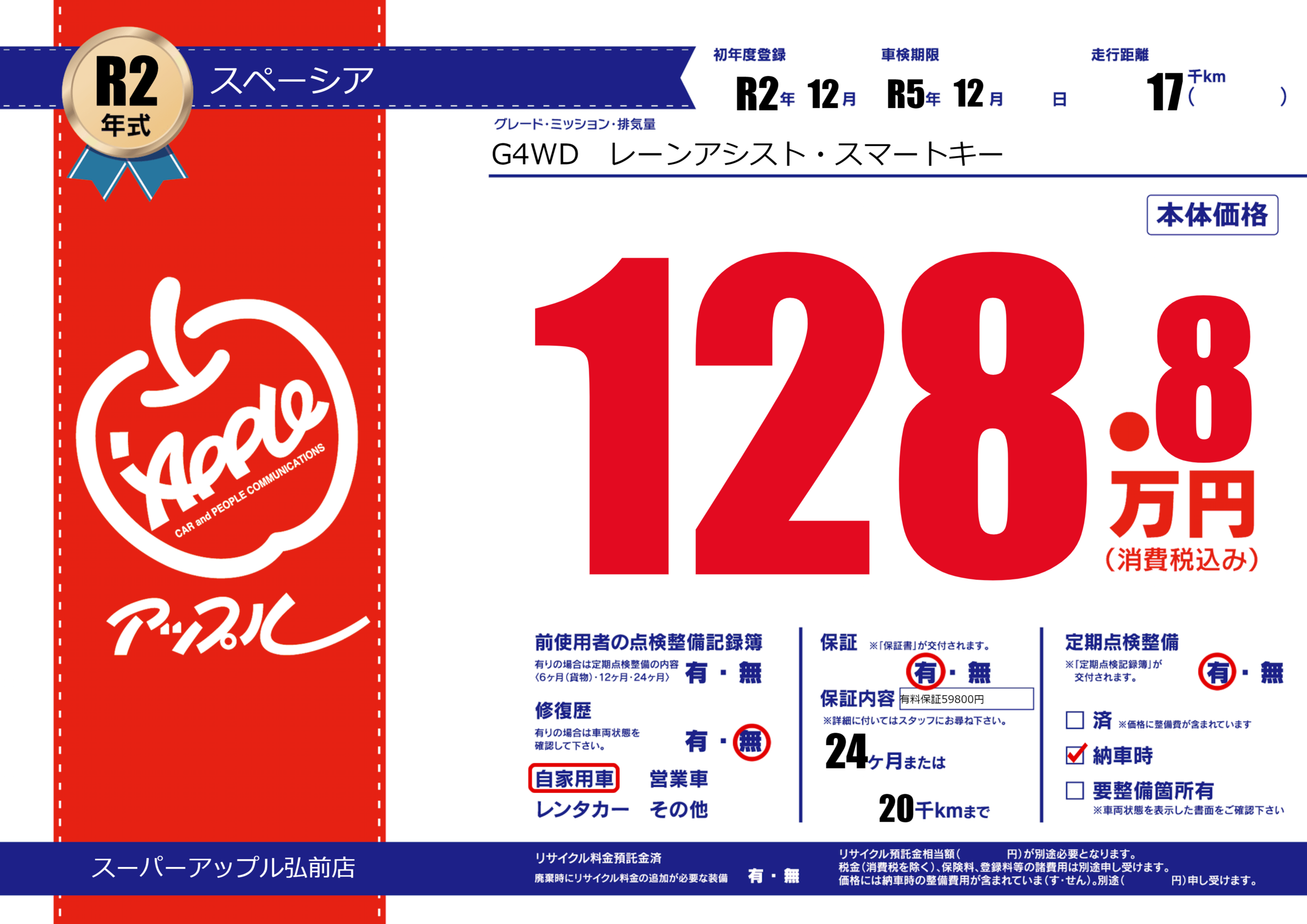 | 車名 | スペーシア | グレード ミッション 排気量 |