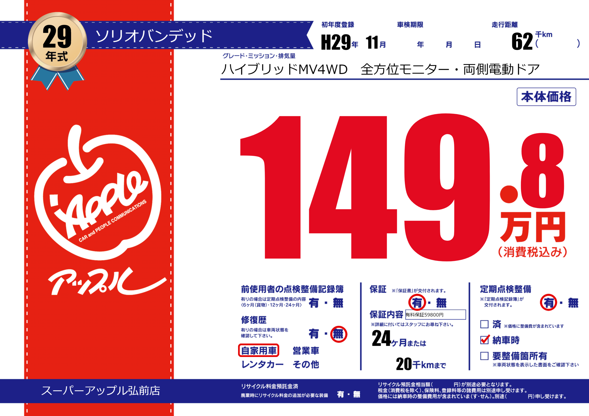 | 定期点検整備 | 定期点検整備あり 納車時あり | ||