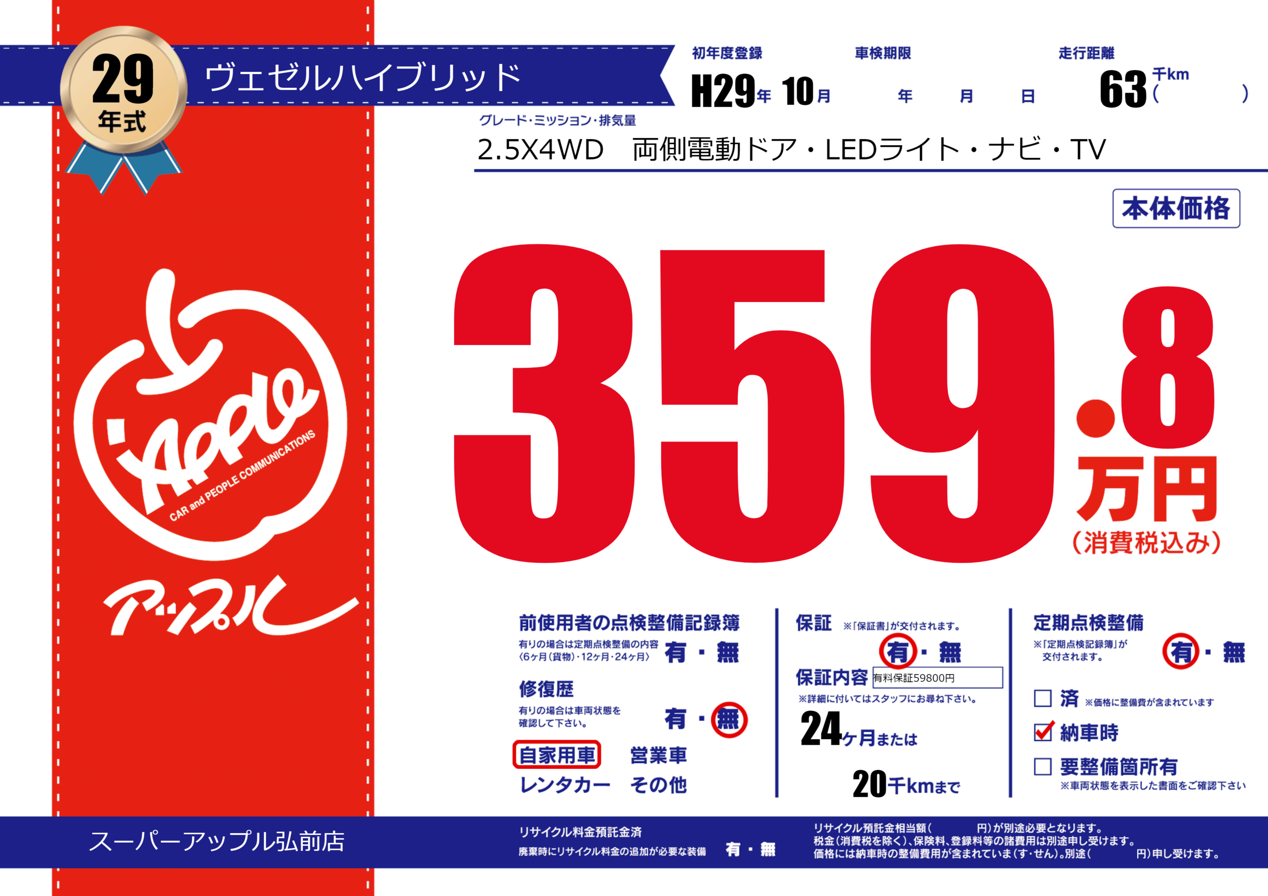 | 車名 | ヴェゼルハイブリッド | グレード ミッション 排気量 |