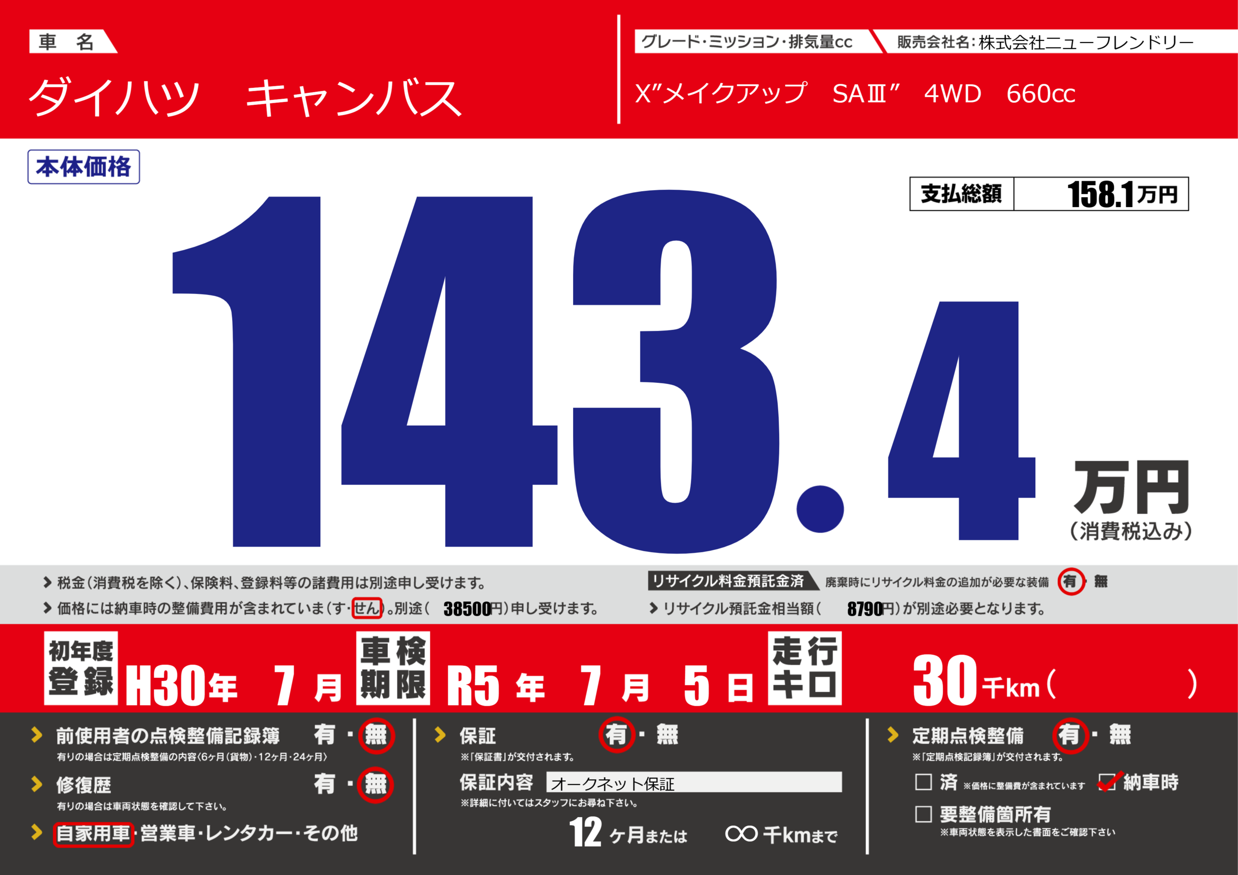 | 車検制限 | R5年 7月 5日 | ||