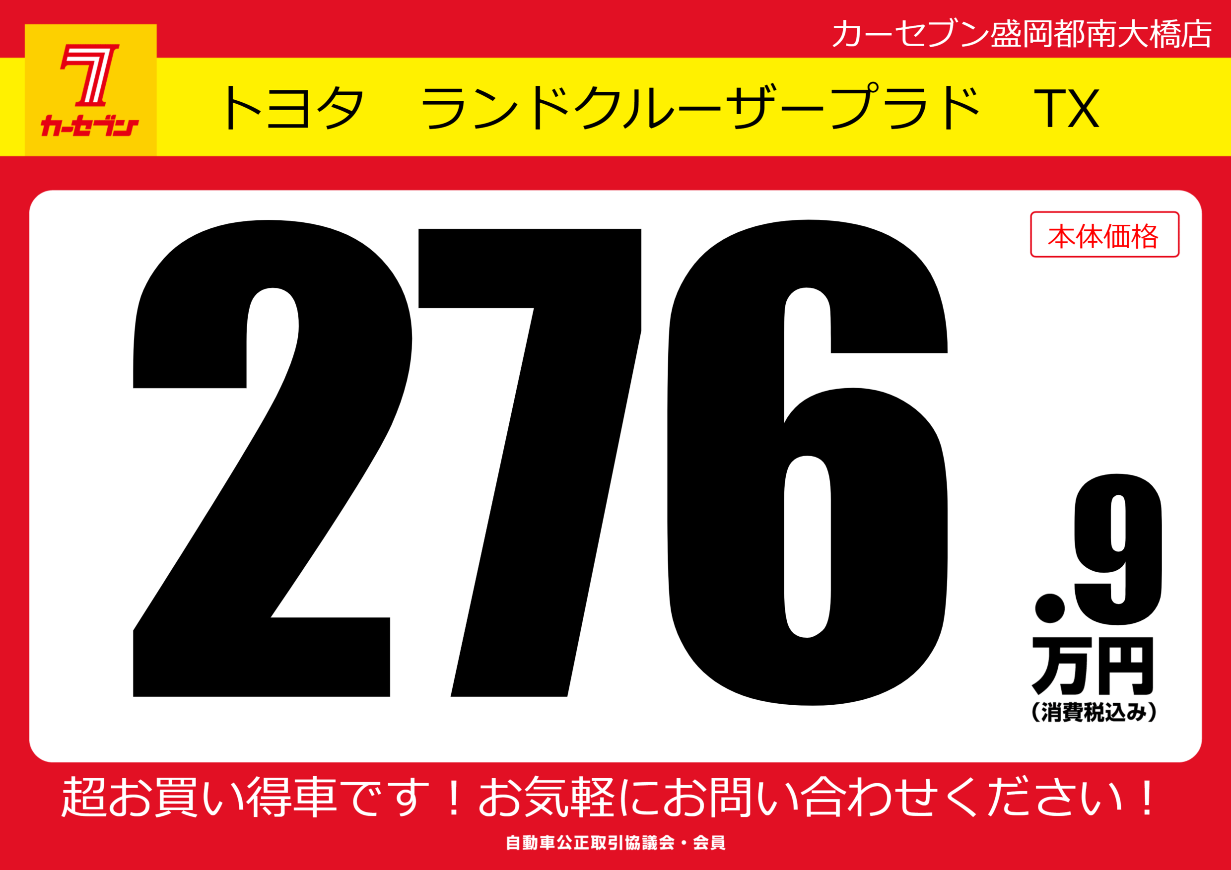 | 車名 | トヨタ ランドクルーザープラド TX | グレード ミッション 排気量 |