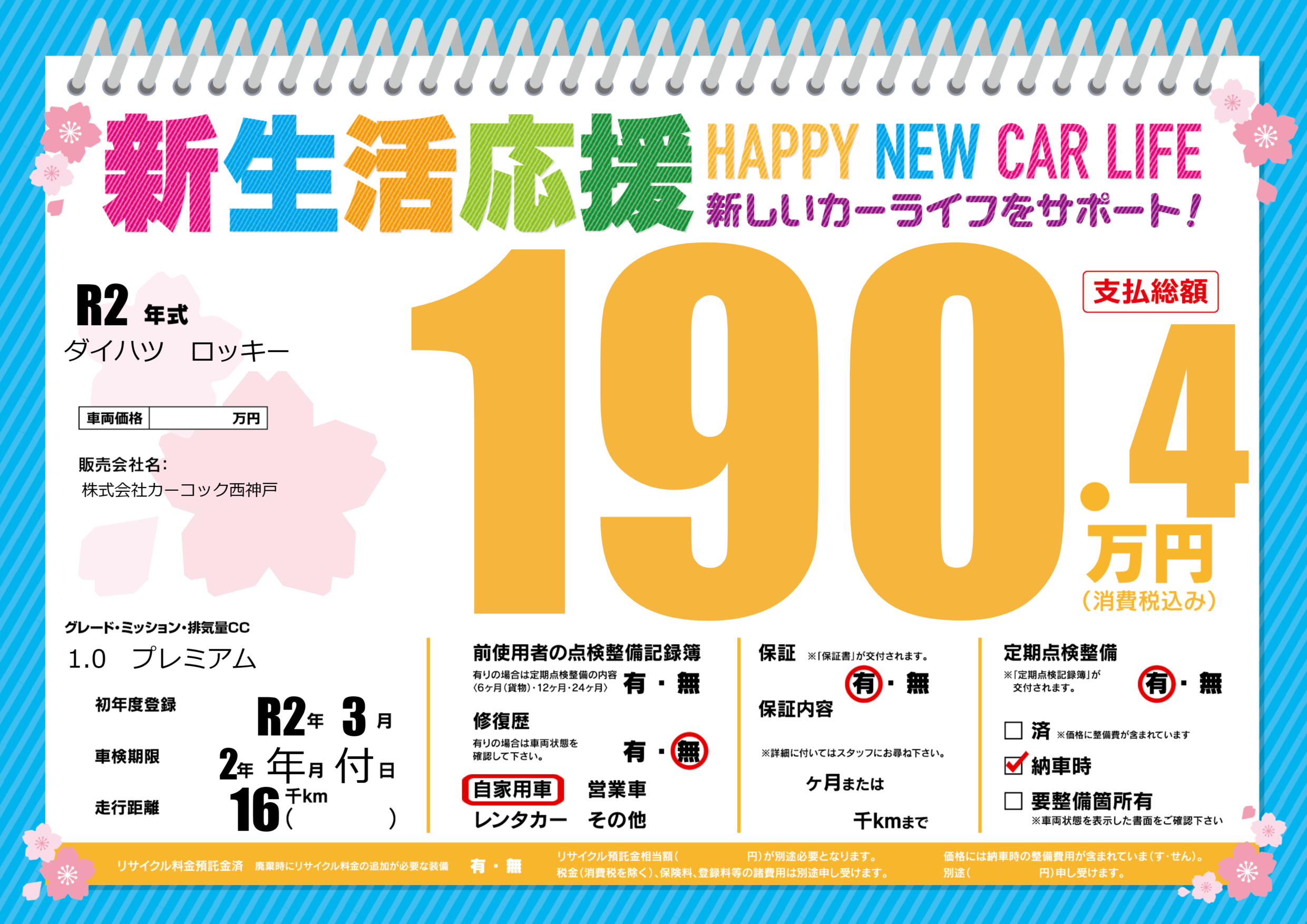 | 車検制限 | 2年 年月 付日 | ||