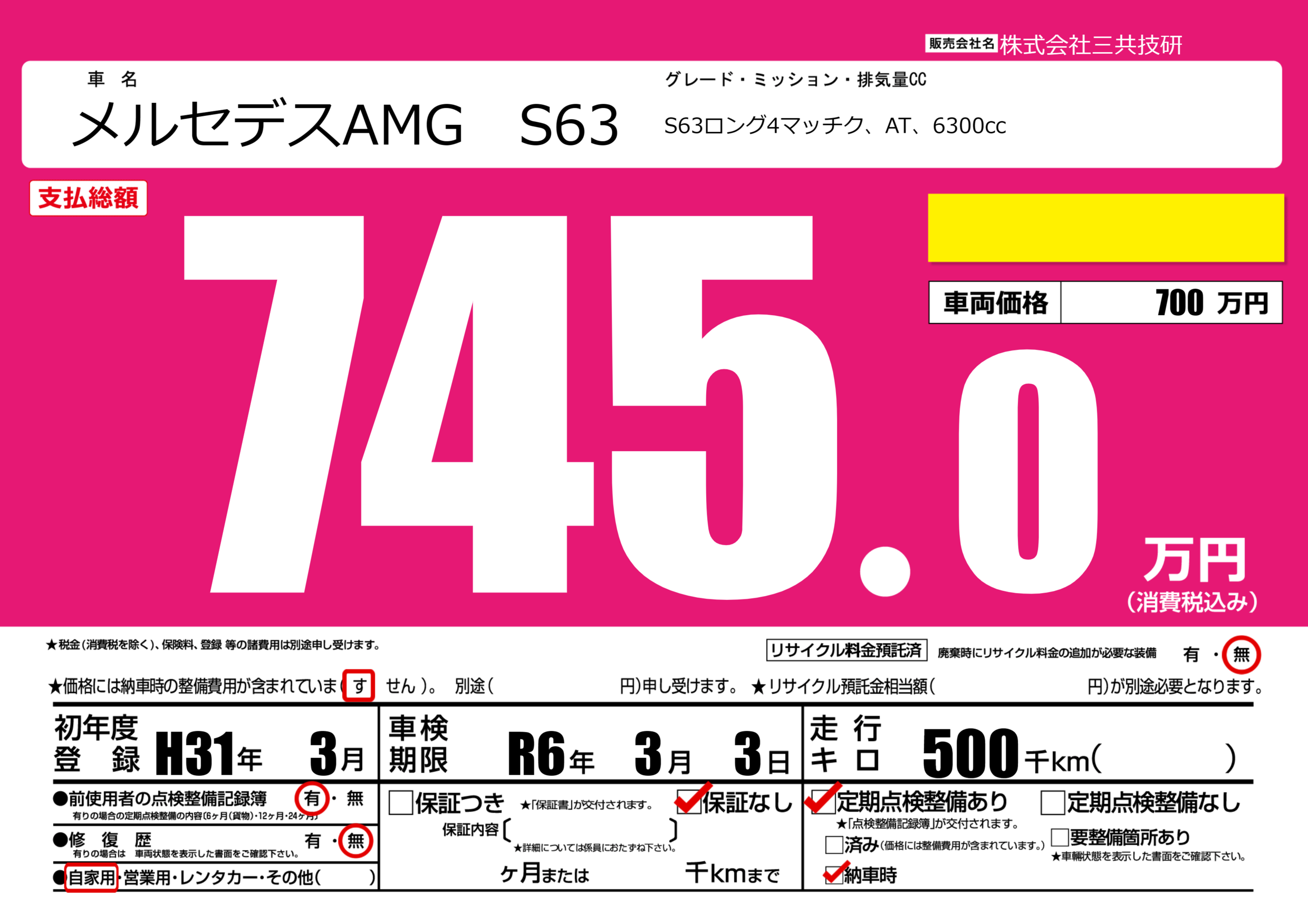 S63ロング4マッチク、AT、6300cc |