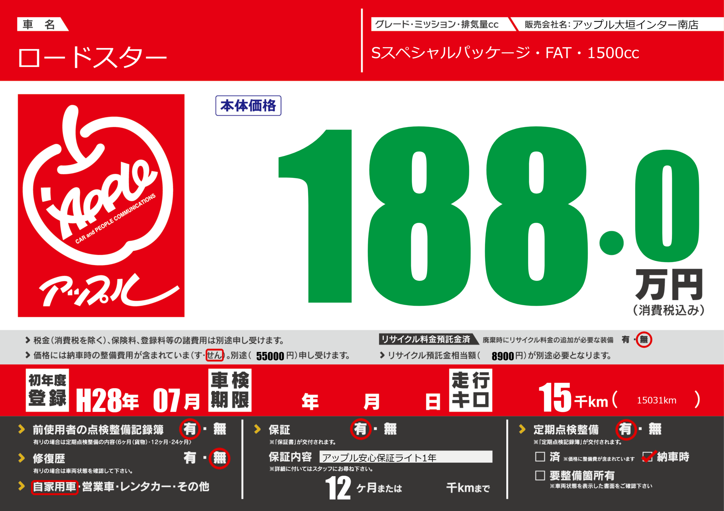 | 車名 | ロードスター | グレード ミッション 排気量 |