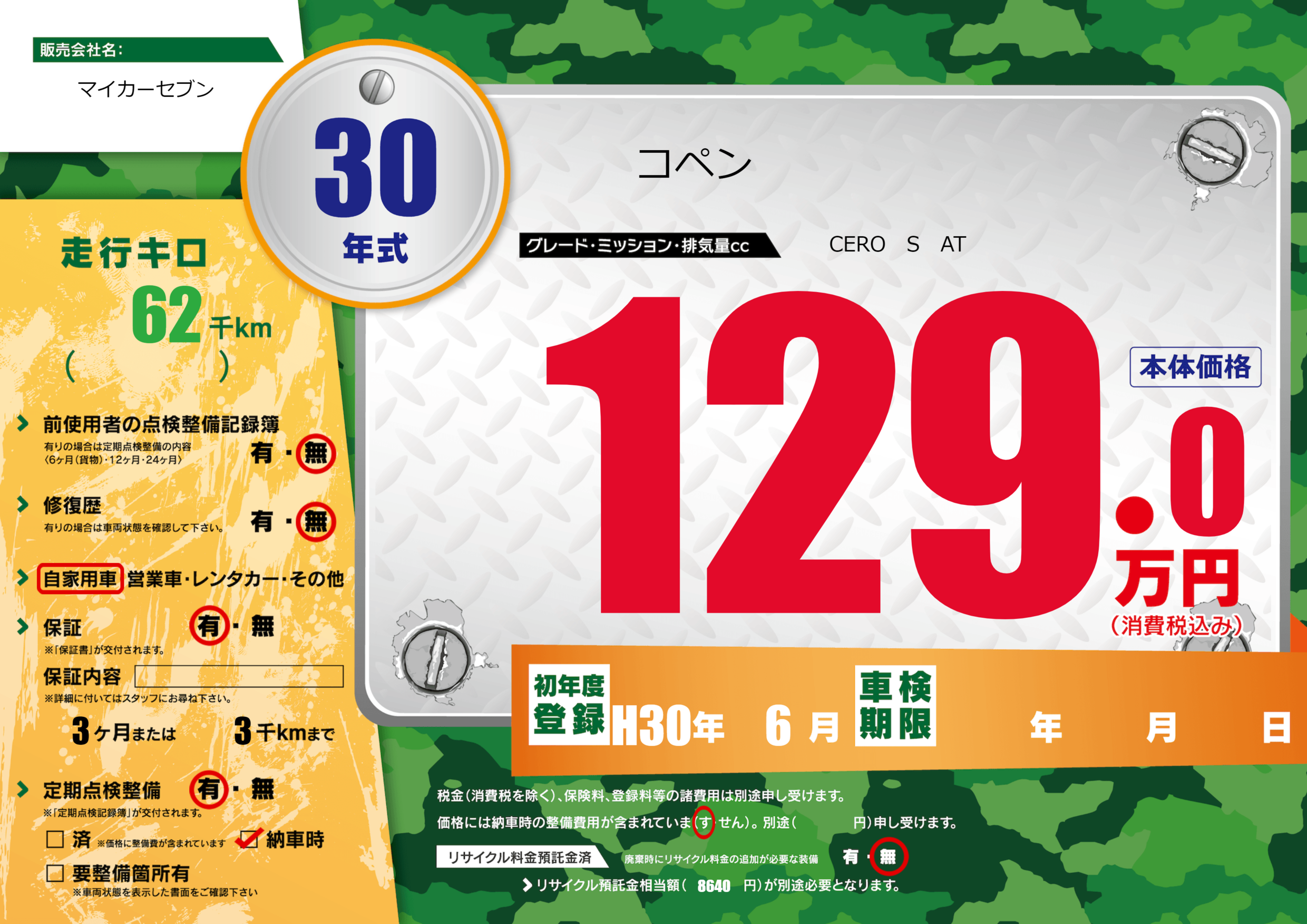 保証付き 保証内容(---) 3ヶ月または(3)千kmまで |