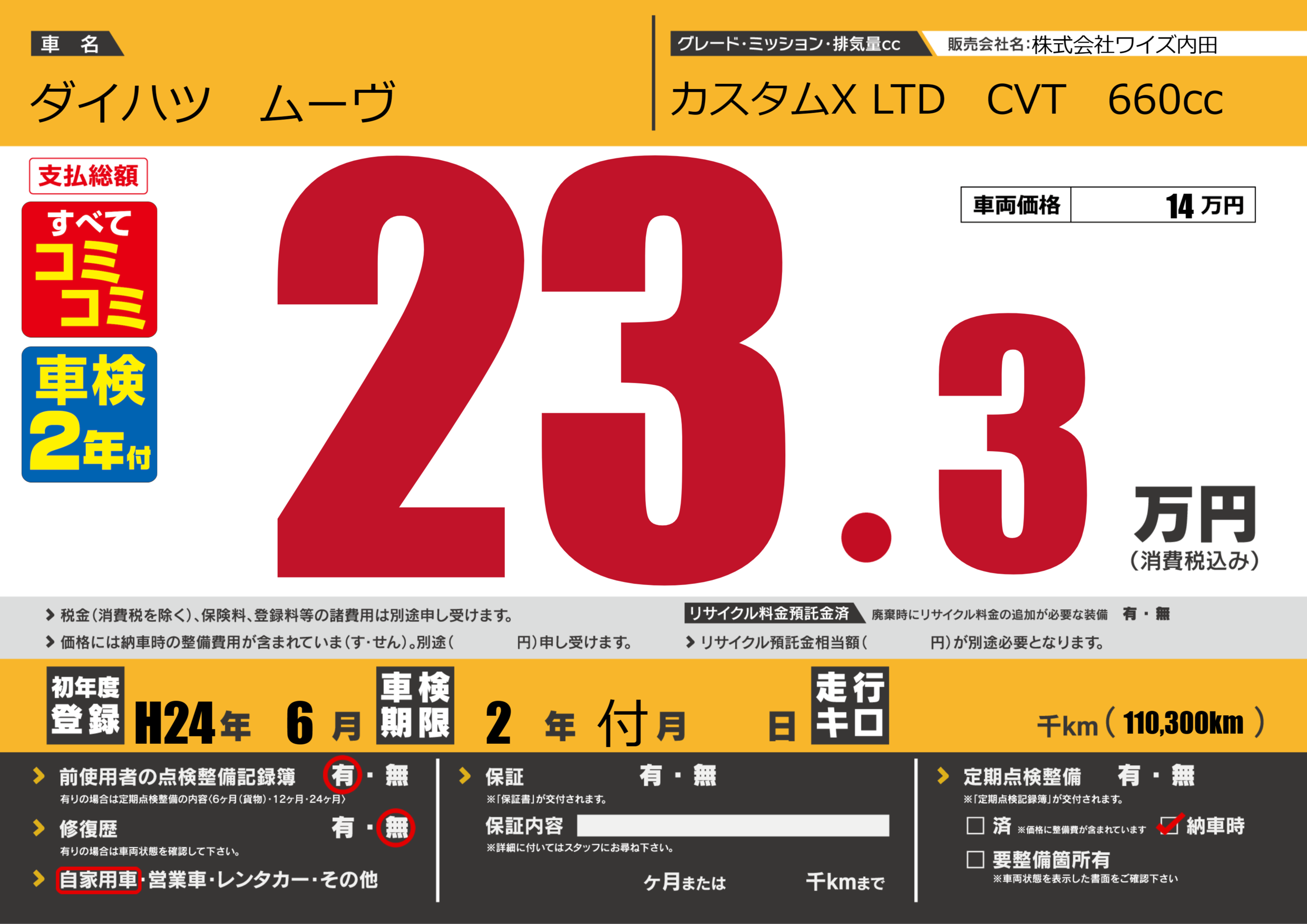 | 走行キロ | - | 初年度登録 | H24年6月 |