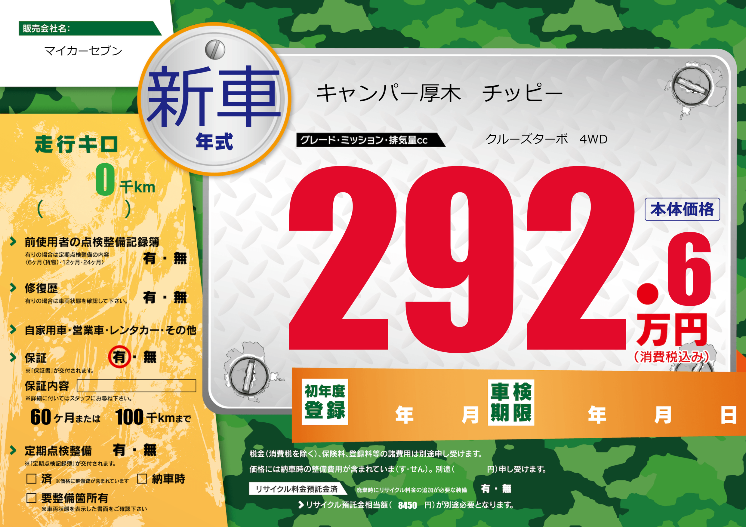 | 車検制限 | - 年 - 月 - 日 | ||