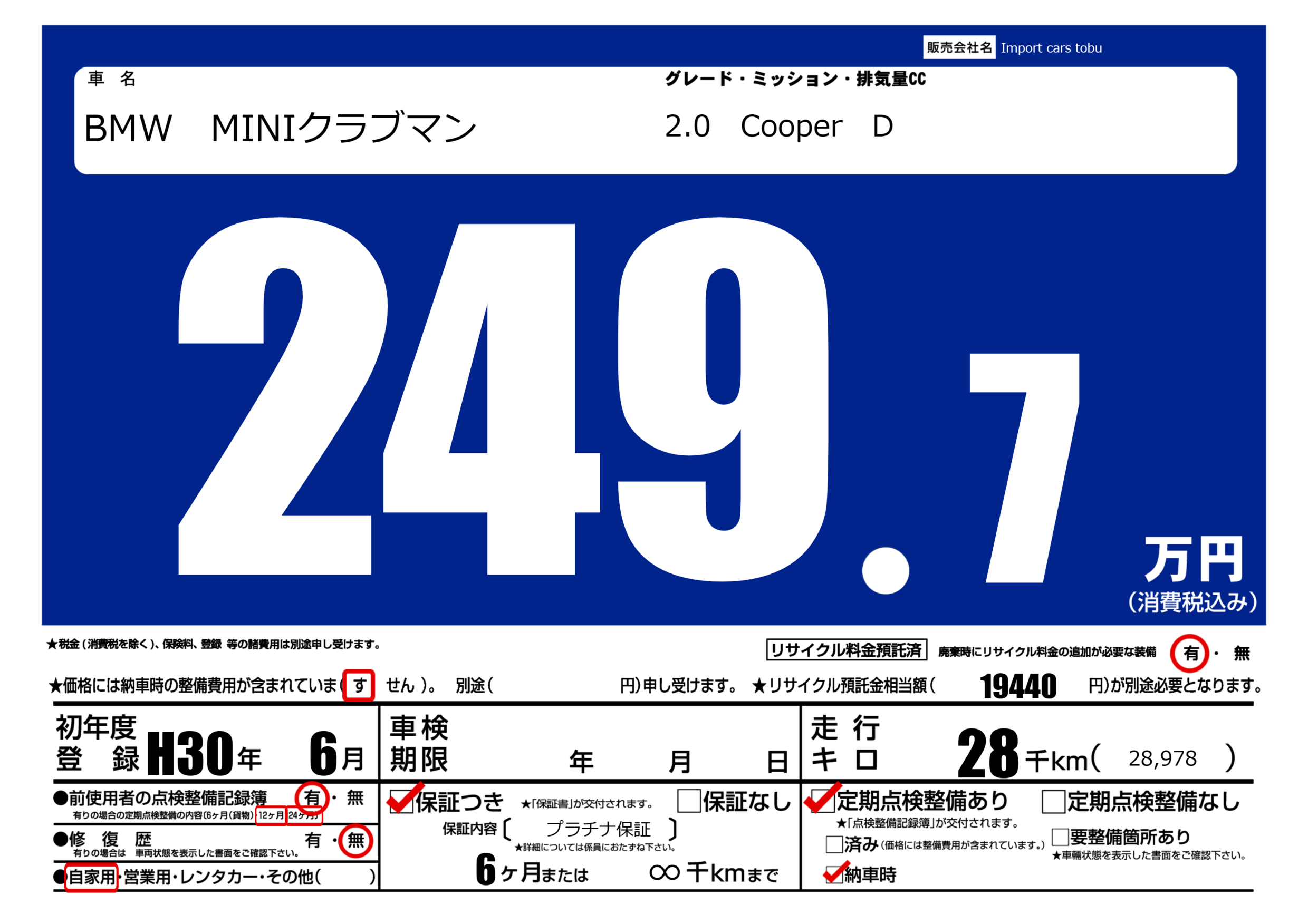 保証付き 保証内容( プラチナ保証) 6ヶ月または(∞)千kmまで |