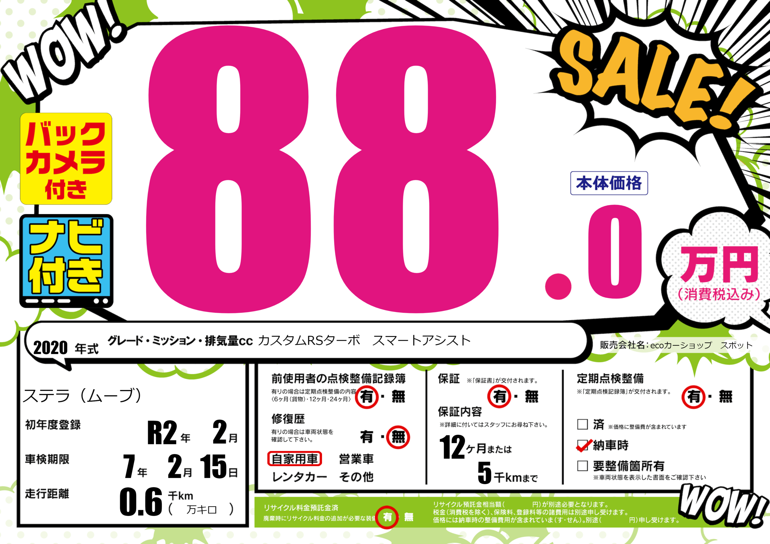 | 走行キロ | - | 初年度登録 | R2年2月 |