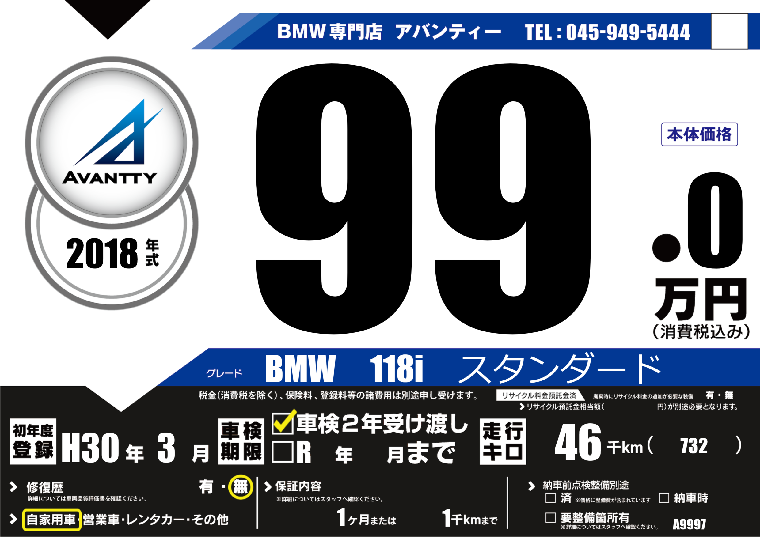 | 走行キロ | 4.6万km | 初年度登録 | H30年3月 |