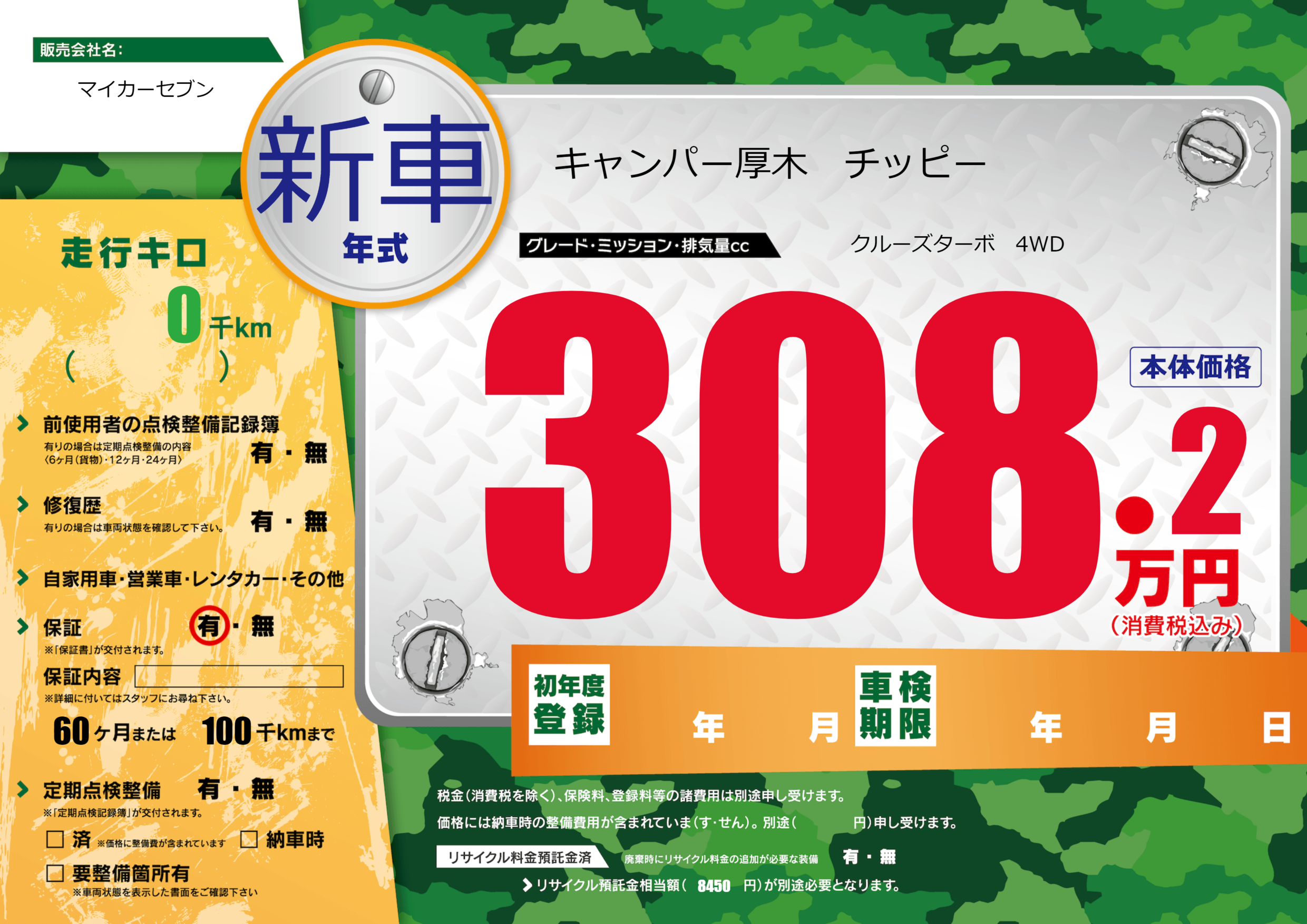 | 車名 | キャンパー厚木 チッピー | グレード ミッション 排気量 |