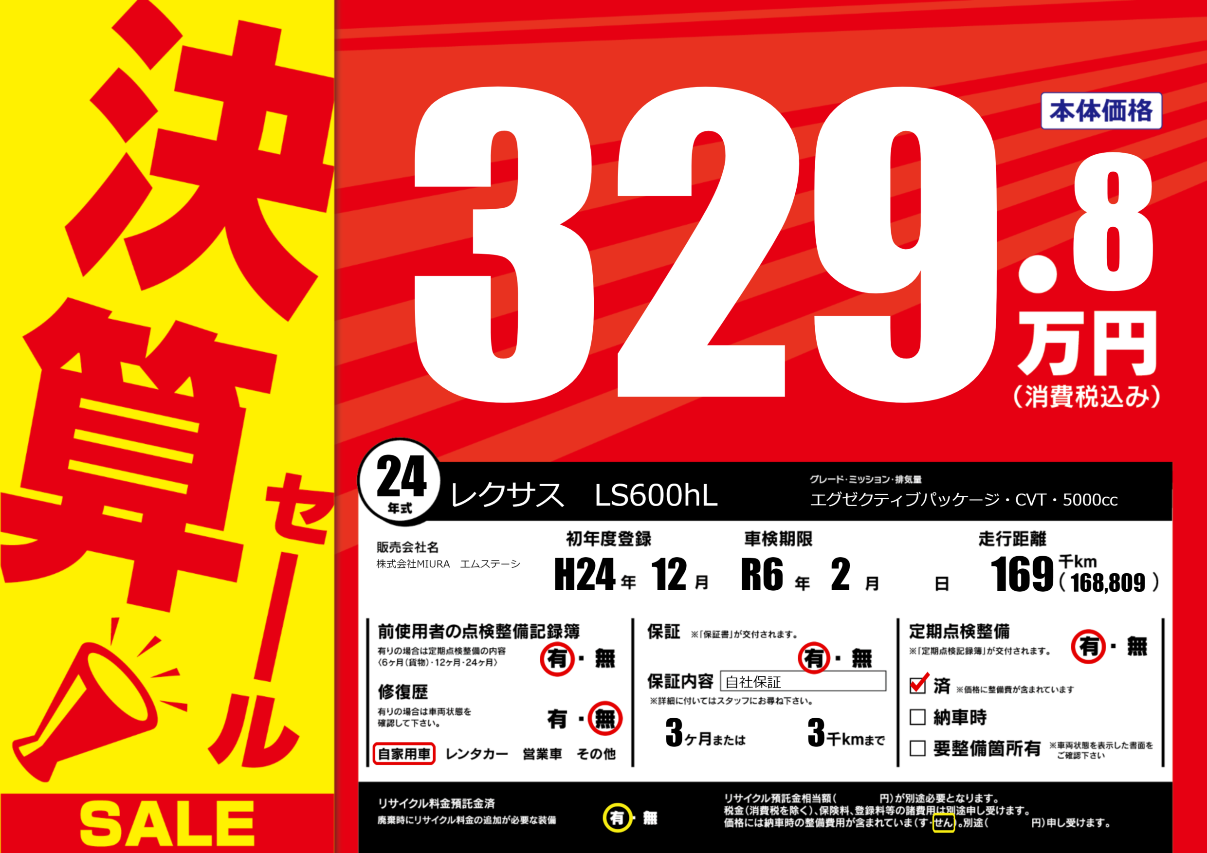 | 定期点検整備 | 定期点検整備あり 定期点検整備済み | ||