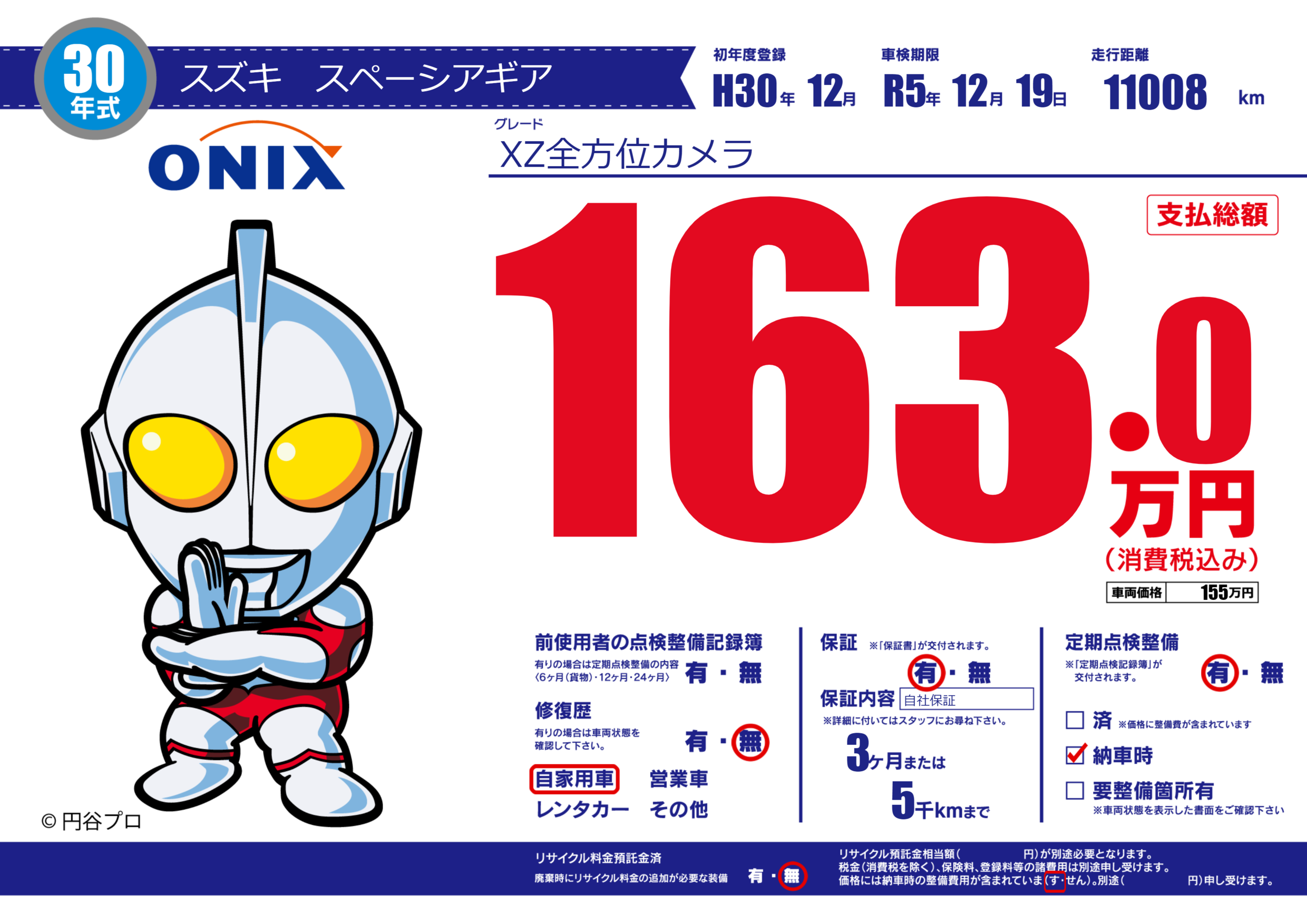 保証付き 保証内容(自社保証) 3ヶ月または(5)千kmまで |