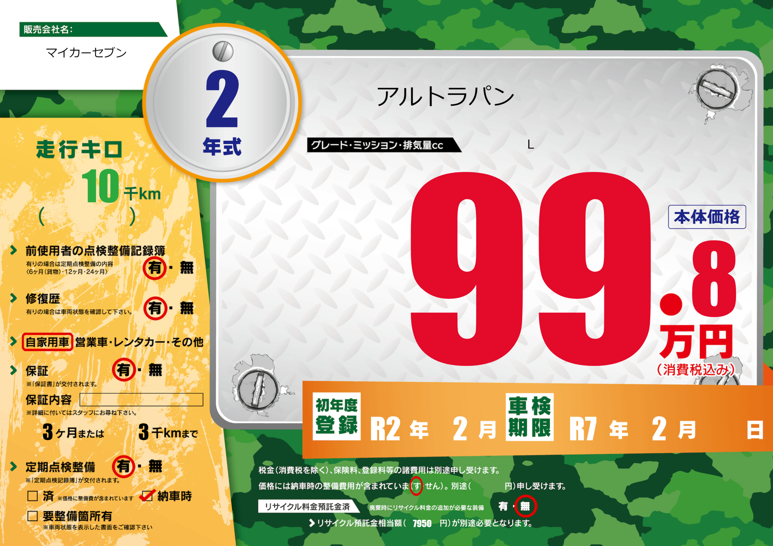 | 定期点検整備 | 定期点検整備あり 納車時あり | ||