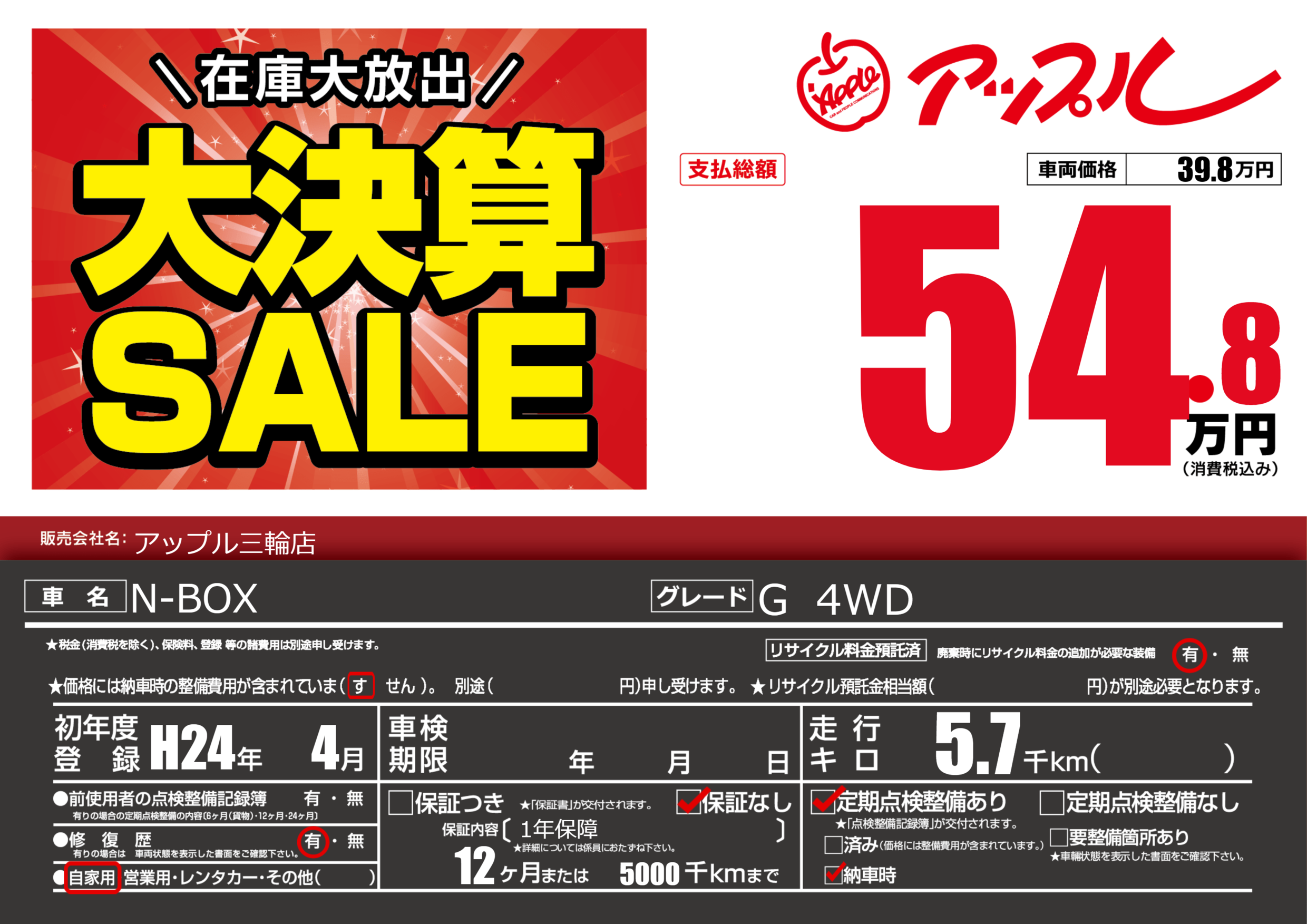 | 初年度登録 | H24年4月 | ||