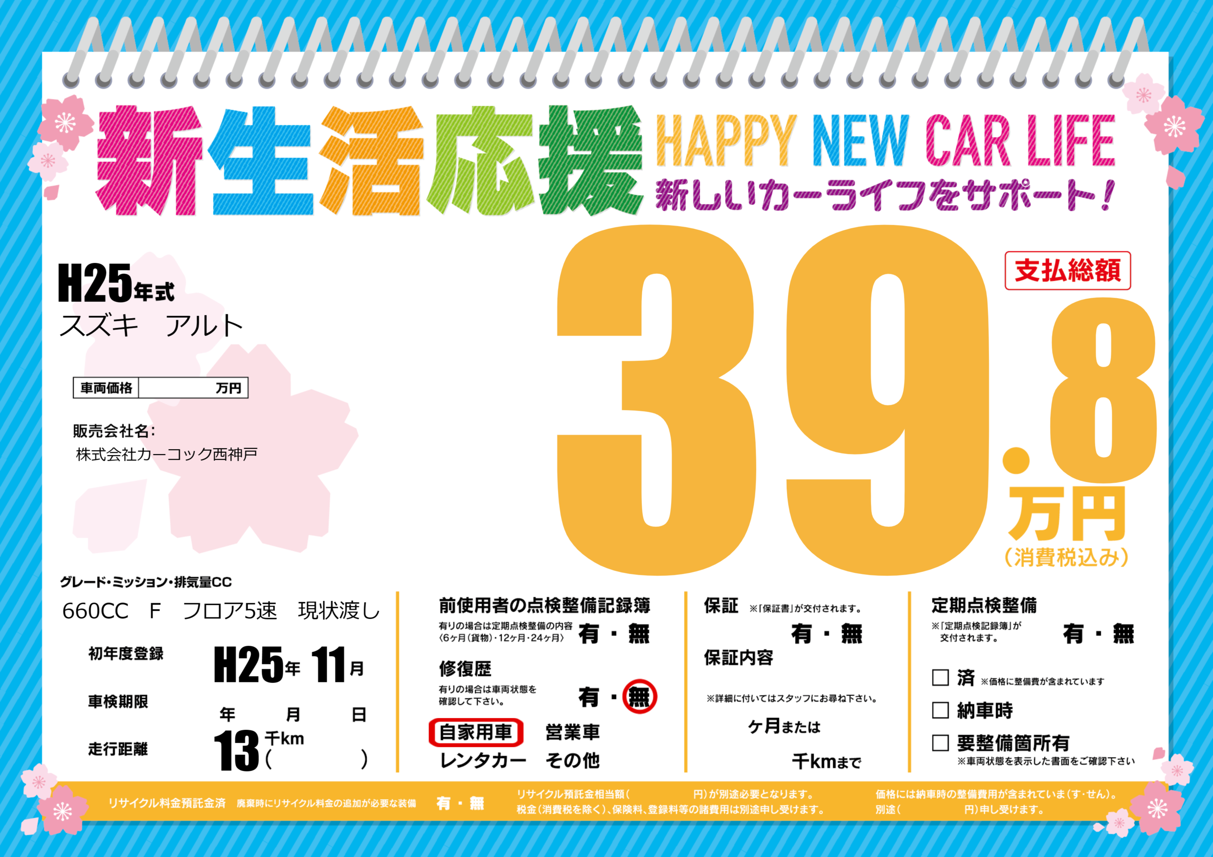 | 車名 | スズキ アルト | グレード ミッション 排気量 |