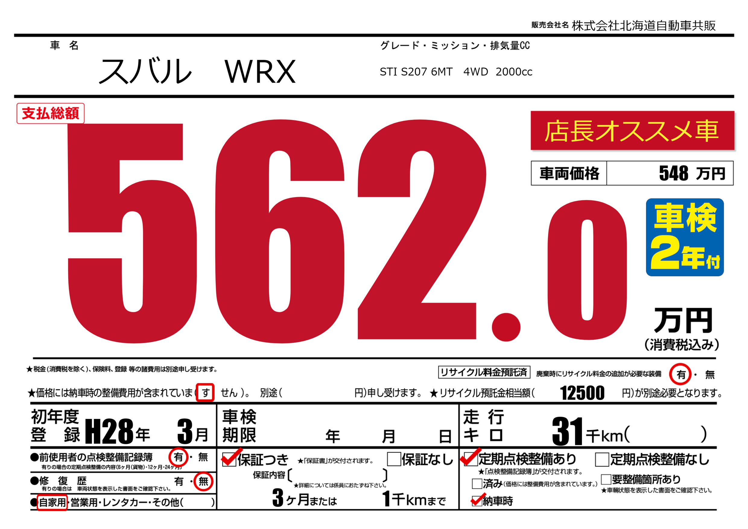 STI S207 6MT 4WD 2000cc |