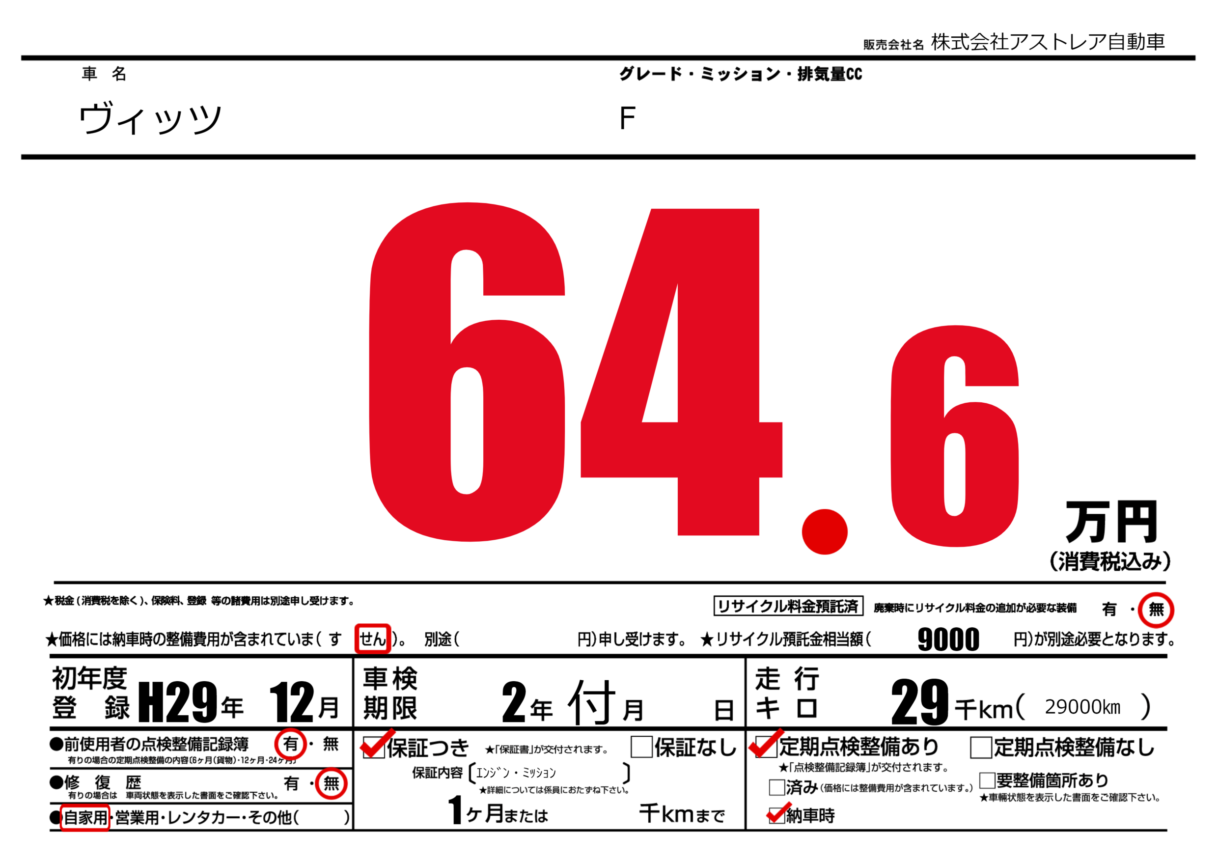 なし | 車検制限 | 2年付月---月 |