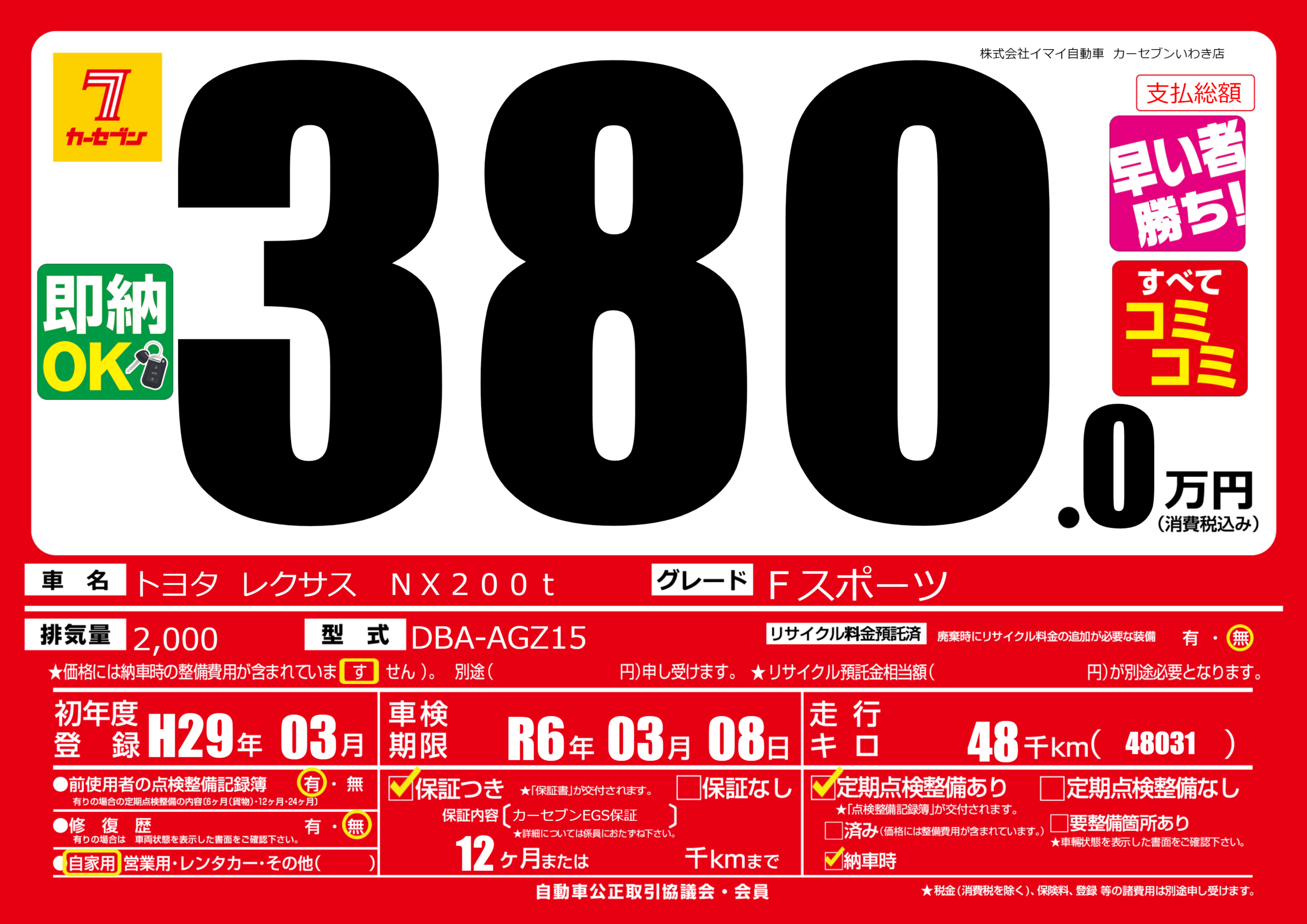 | 車検制限 | R6年 03月 08日 | ||