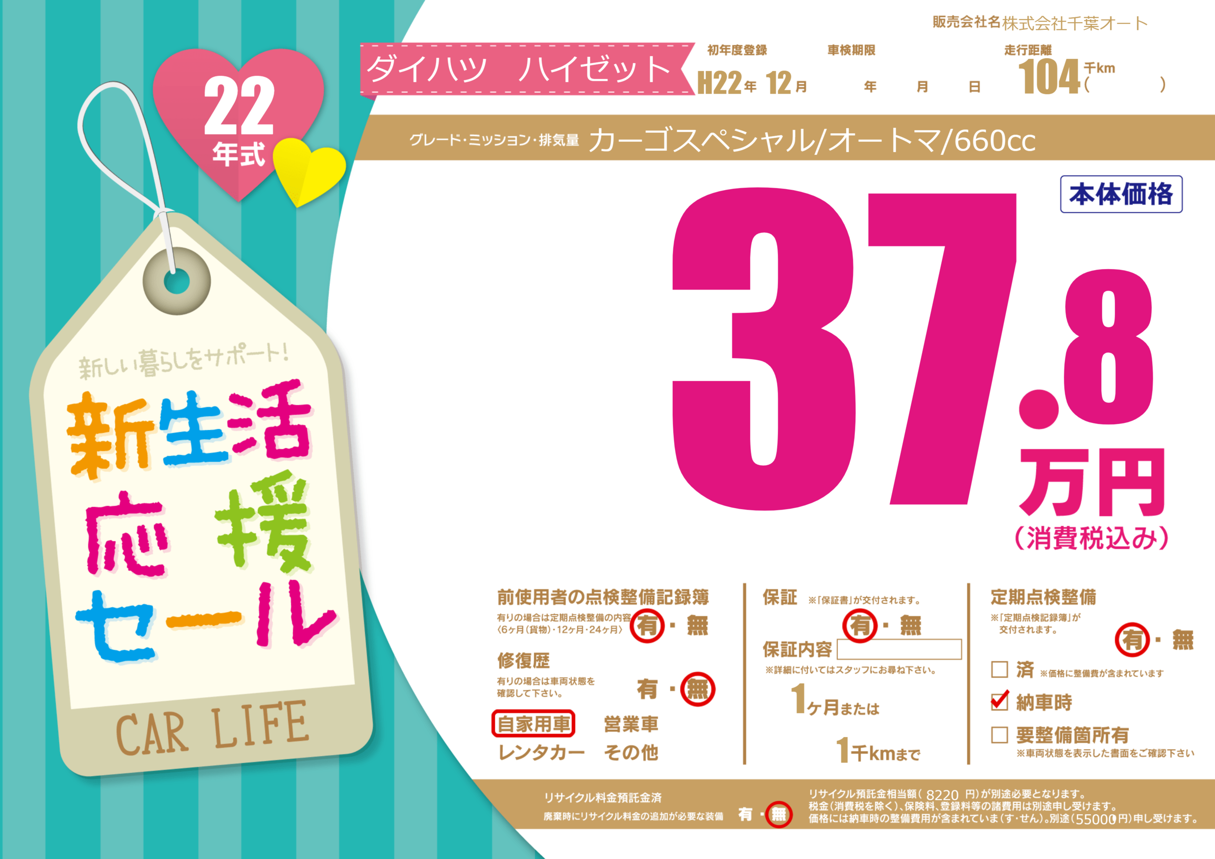 | 定期点検整備 | 定期点検整備あり 納車時あり | ||