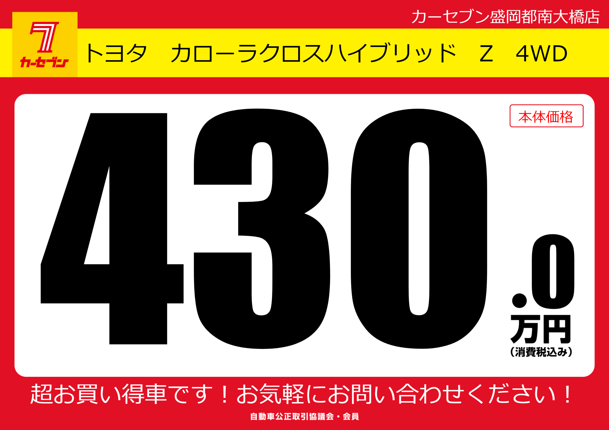| 車名 | トヨタ カローラクロスハイブリッド Z 4WD | グレード ミッション 排気量 |