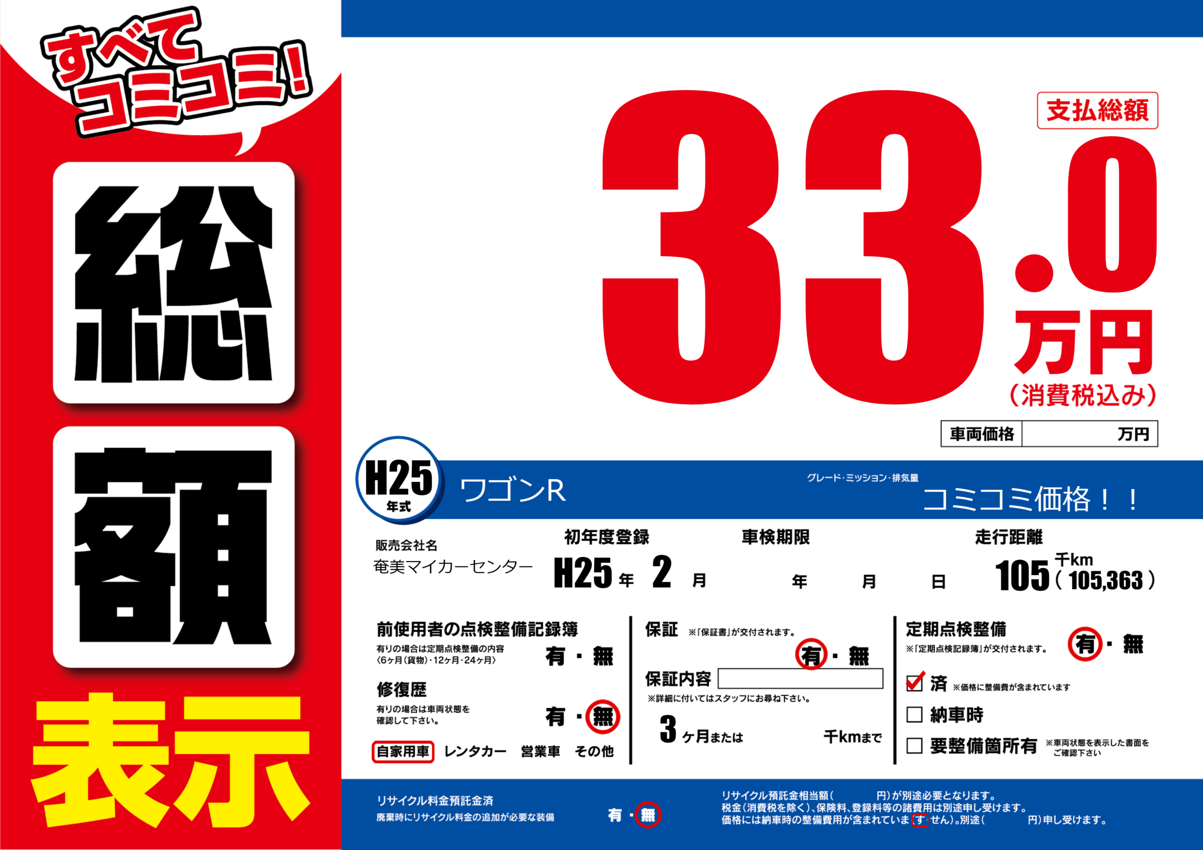 | 定期点検整備 | 定期点検整備あり 定期点検整備済み | ||
